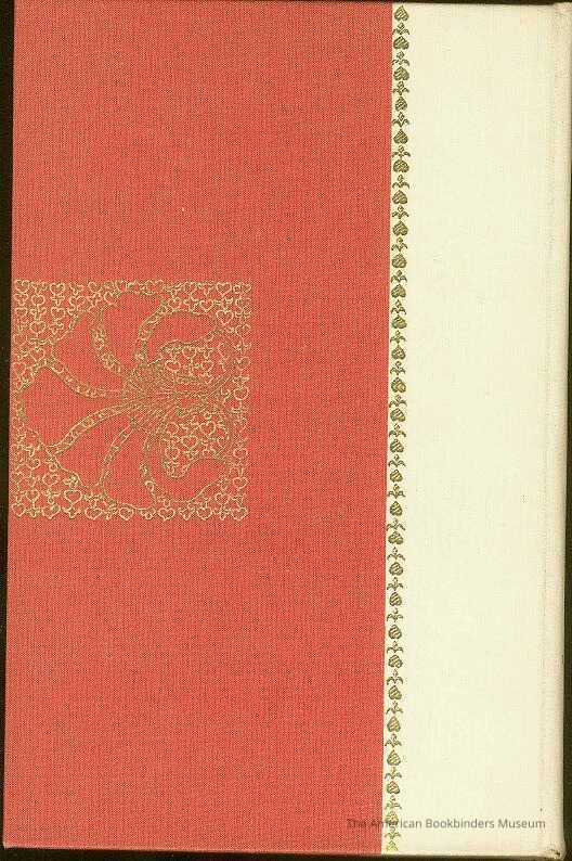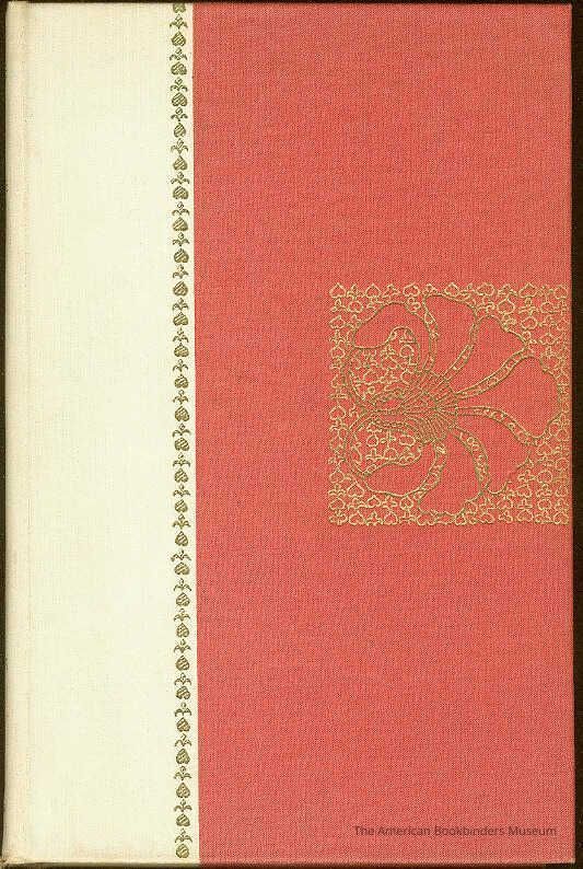 Two-color title page. Top edges gilt. Designed by Sarah Wyman Whitman in a three part binding of cream vellum-like cloth to the spine with red cloth boards featuring a square (2.5 x 2.5 inches approx.) panel in an intricate gilt stamped stylized design of an iris blossom and small hearts which is placed to the center right of the front board and repeated to the rear, a common design technique of Whitman's. Spine also has the iris/heart motif in gilt.Relationships