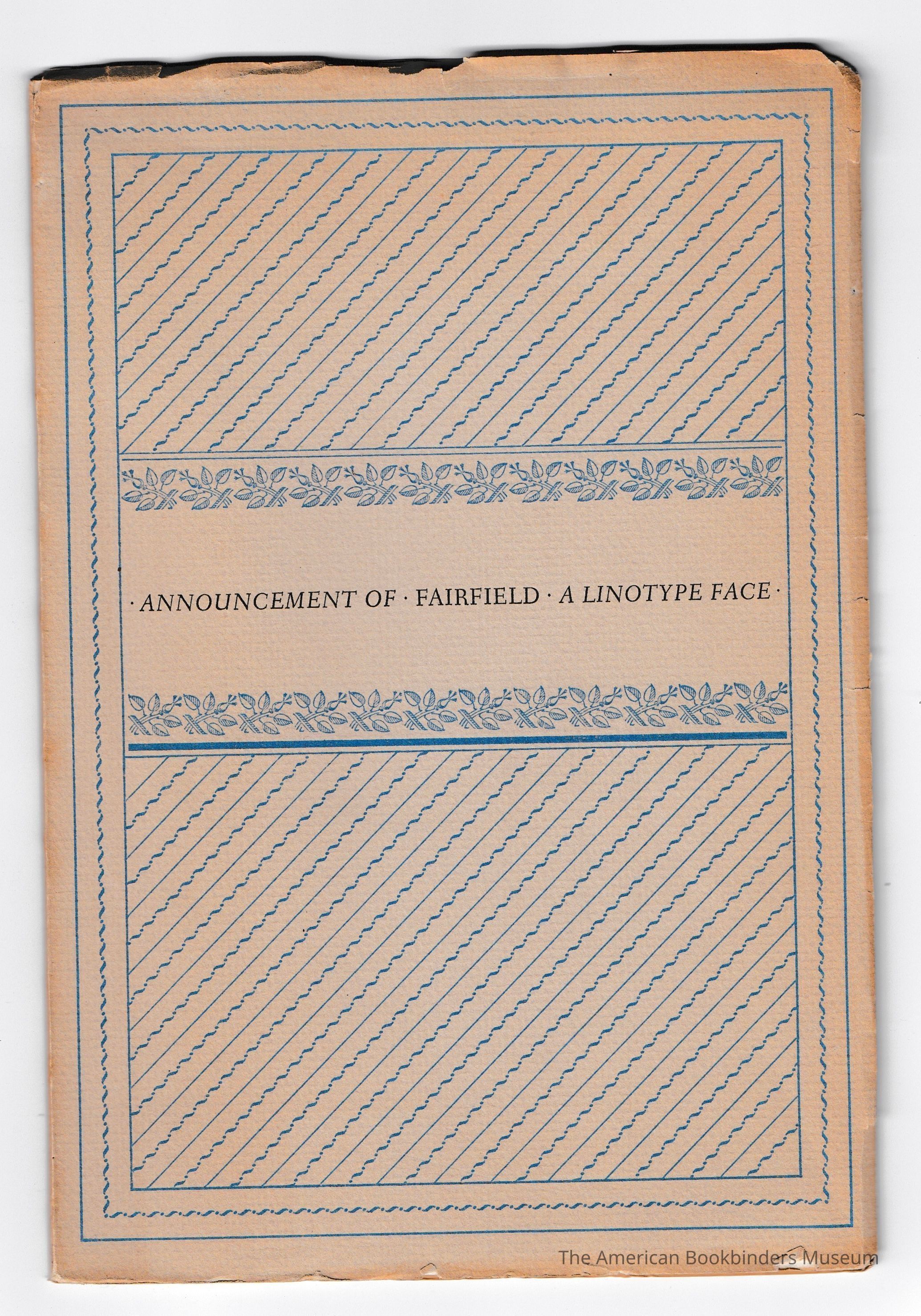 Announcement of Fairfield: A Linotype FaceEntry/Object ID