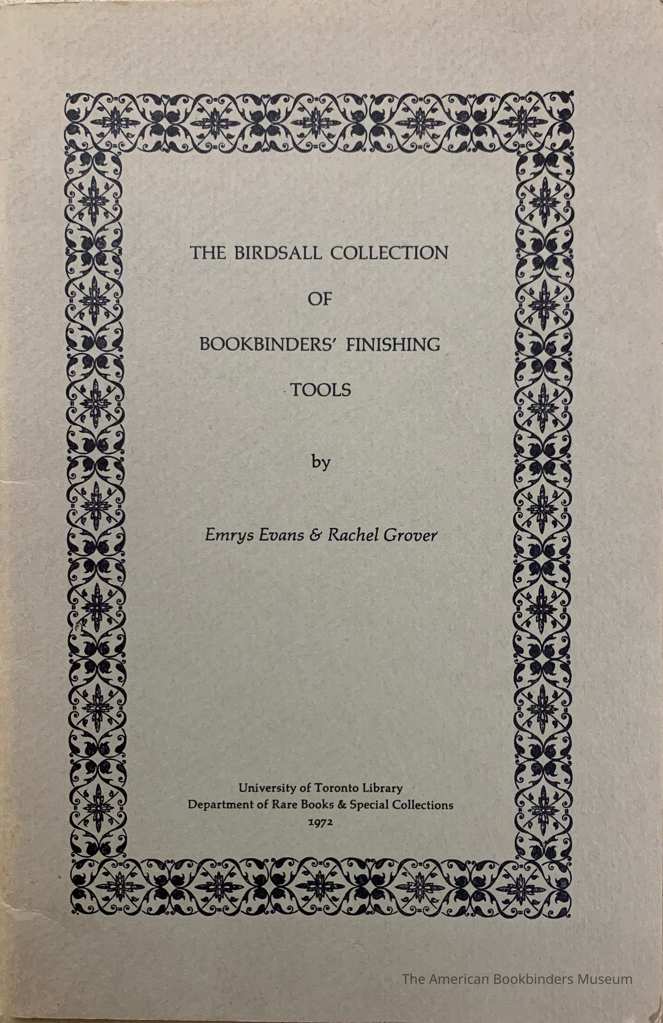 The Birdsall Collection of Bookbinders' Finishing Tools / by Emrys Evans & Rachel Grover.Entry/Object ID