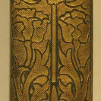 Bound in olive green cloth with full cover stamped gilt art nouveau design of flowers, stems, and leaves to cover and spine. Design is notable for extending into the ruled border. Top edge gilt.Exhibitions
