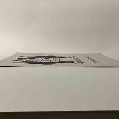 Right and left sides have figures leaning back while looking up, arms outstretched. Text between them, with each work on a separate line. Interspersed is a triangular floral design of three leaves and a blue flower. Author's name below the figures. Farther down is printing information. Right edge is raw, while the bottom edge is torn.Collection