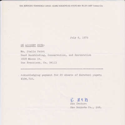 A letter from Iwataro Oka thanking her for the payment of the papers. Unclear if the papers referenced are the same as 2023.9.9.z.Collection