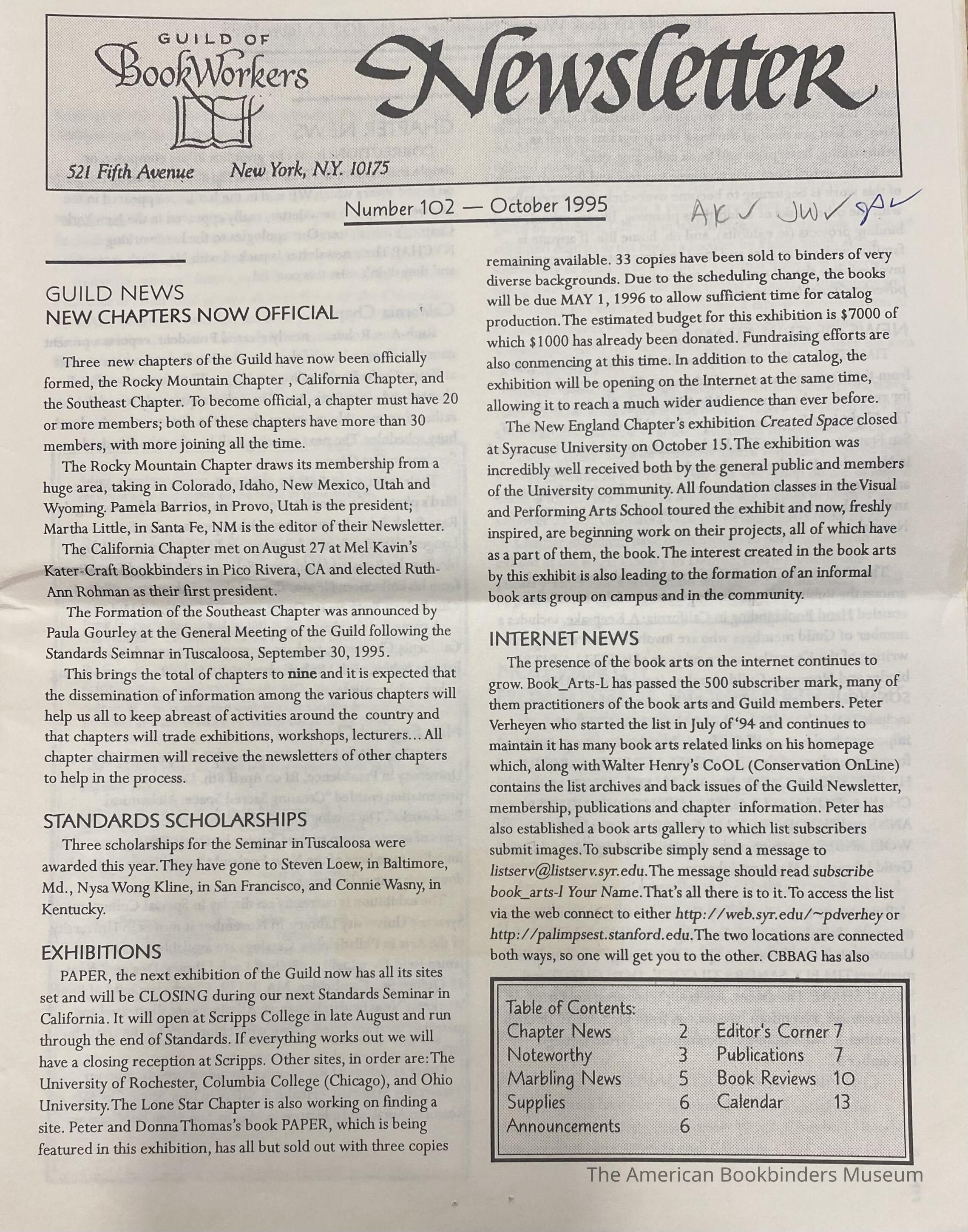 Guild of Book Workers Newsletter , Number 102 , October 1995Entry/Object ID
