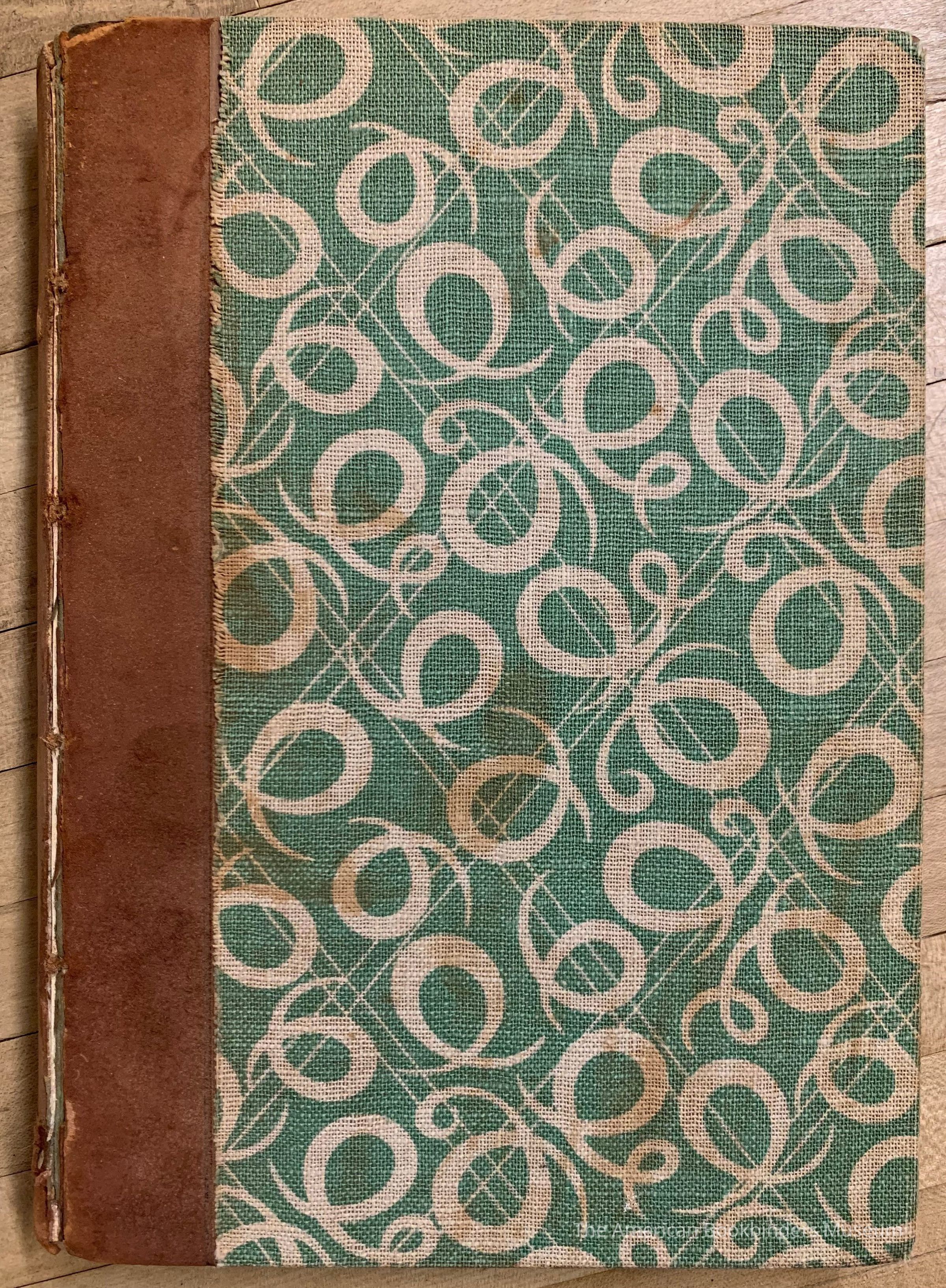 Quarter-bound leather with boards covered in green patterned fabric; plain green endpapers.Notes