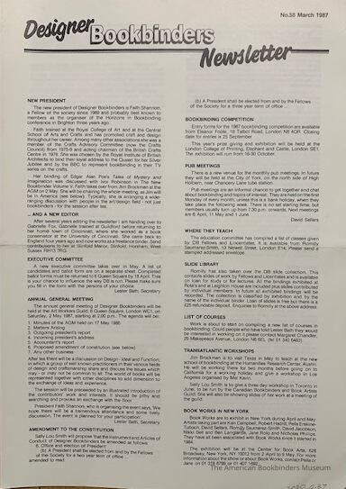 Designer Bookbinders newsletter; No.66; Spring 1989Entry/Object ID