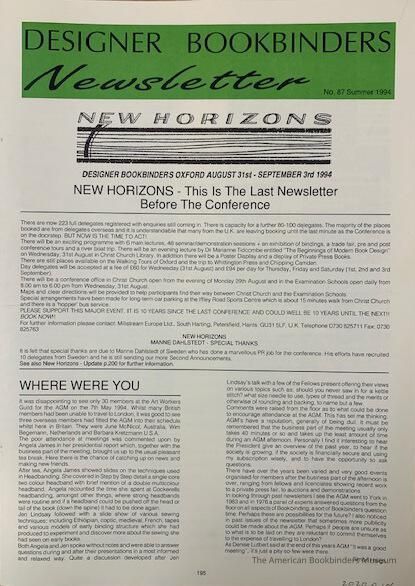 Designer Bookbinders newsletter; No.87; Summer 1994Entry/Object ID