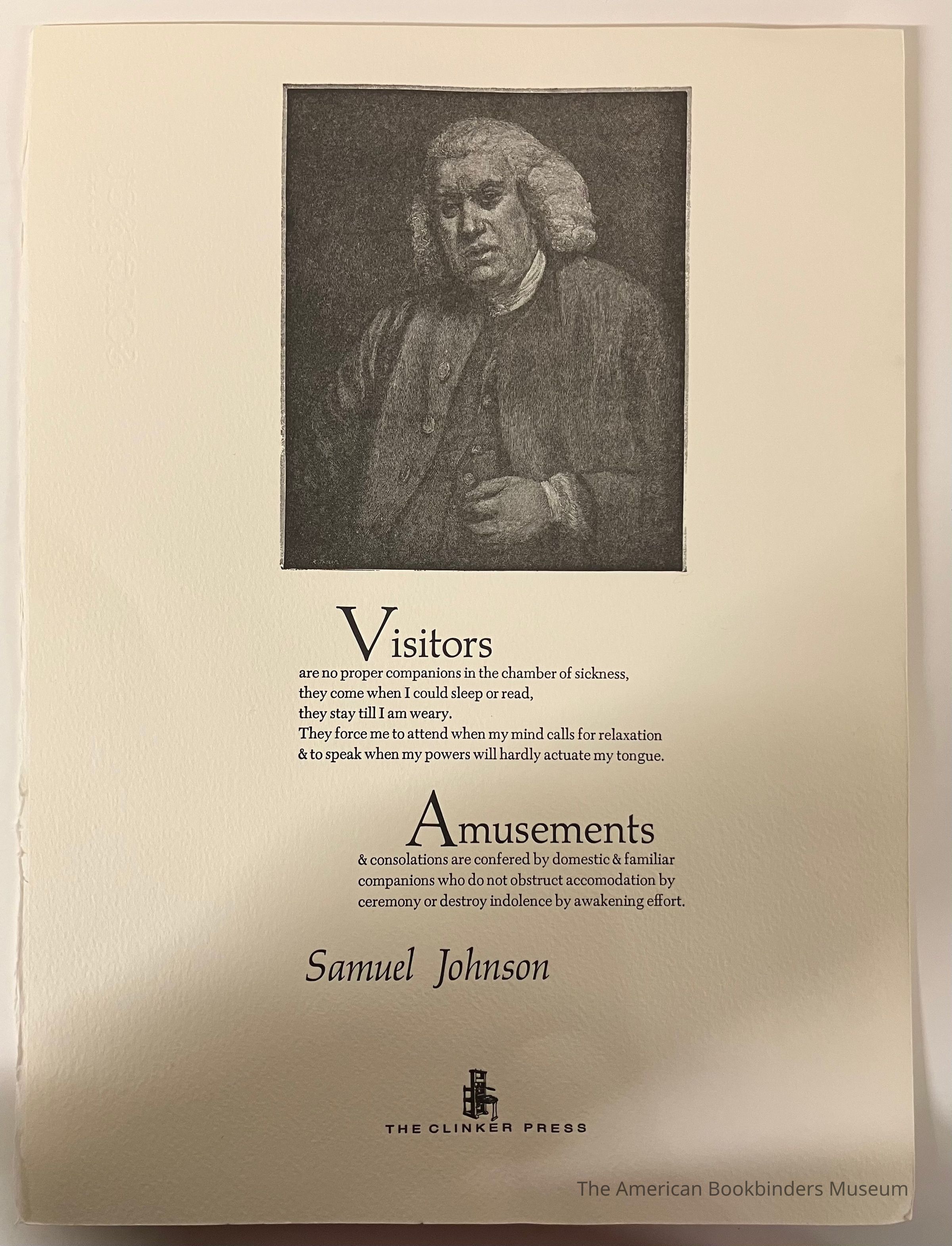 Top half shows Samuel Johnson. Text below, split into two paragraphs, each with the first work in a large font and with drop cap. Author below.Left edge is raw.Collection