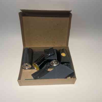Cardboard Box, foil rolls, plastic 6 inch ruler, Medium cushion board