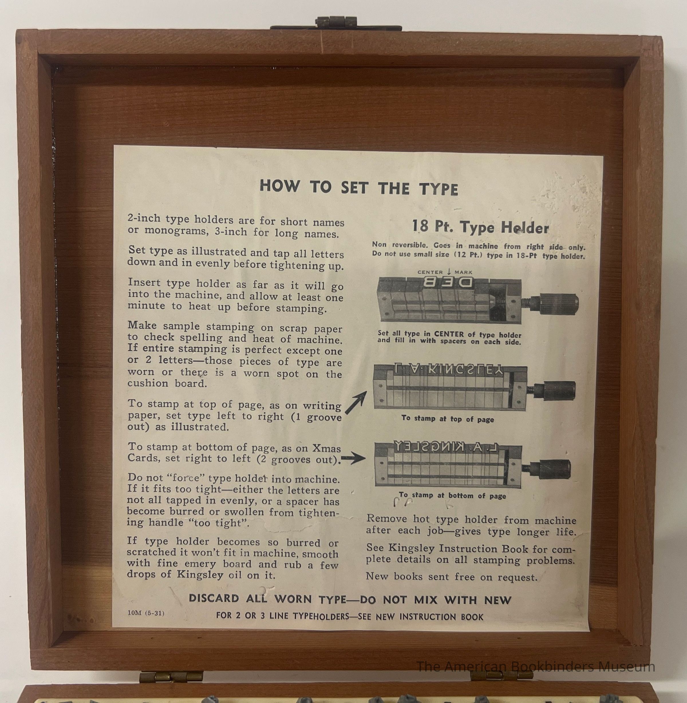 Kingsley Type 12 PT Bernhard Gothic (Caps) Wooden Box (External Front: label and clasp)