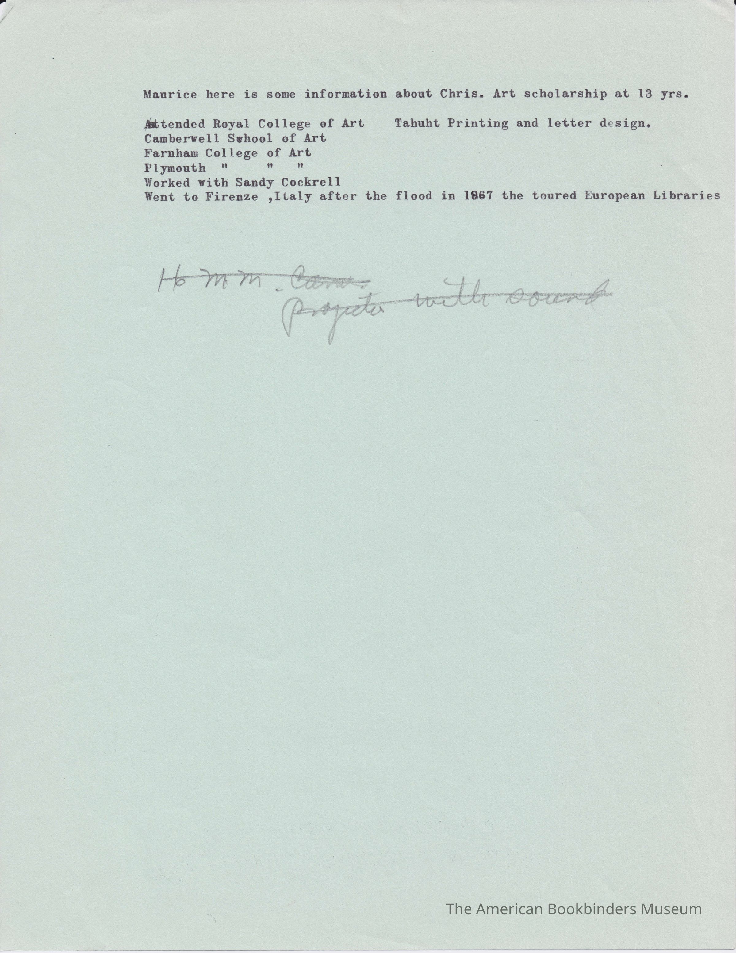 Patri's list of Chris Clarkson's career and education, put together for Maurice.