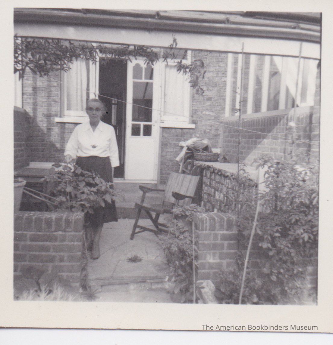 Photo of a woman in front of a house in the backyard. A drying line crosses behind her.