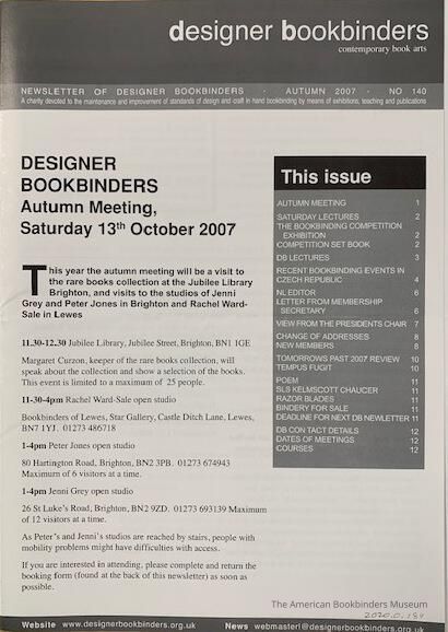 Designer Bookbinders newsletter; No.140; Autumn 2007Entry/Object ID
