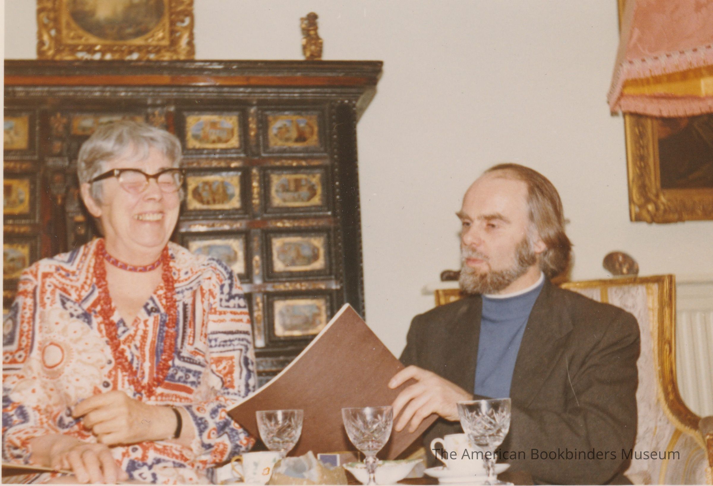 Photo of Stella Patri sitting with Philip Smith to the right. She is caught mid-laughter.Photograph Details