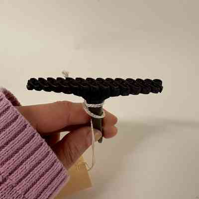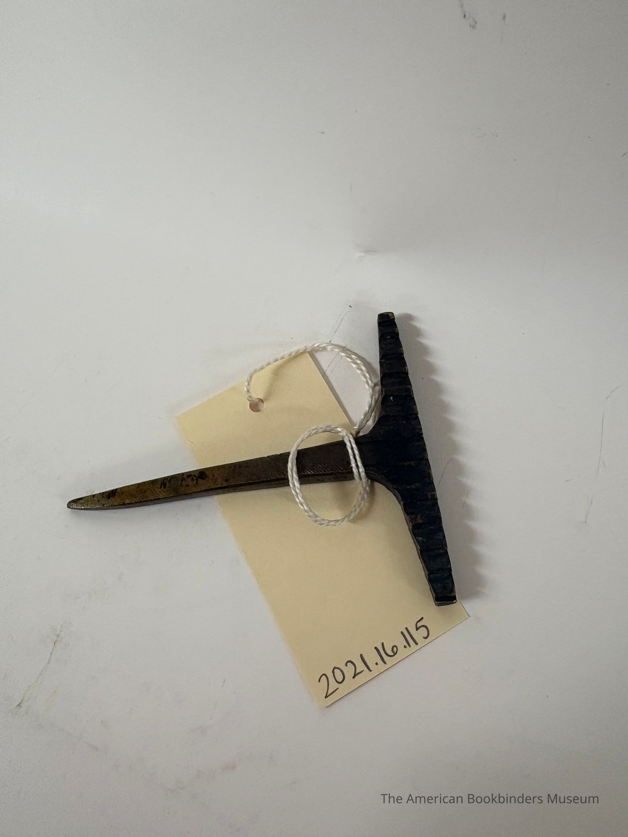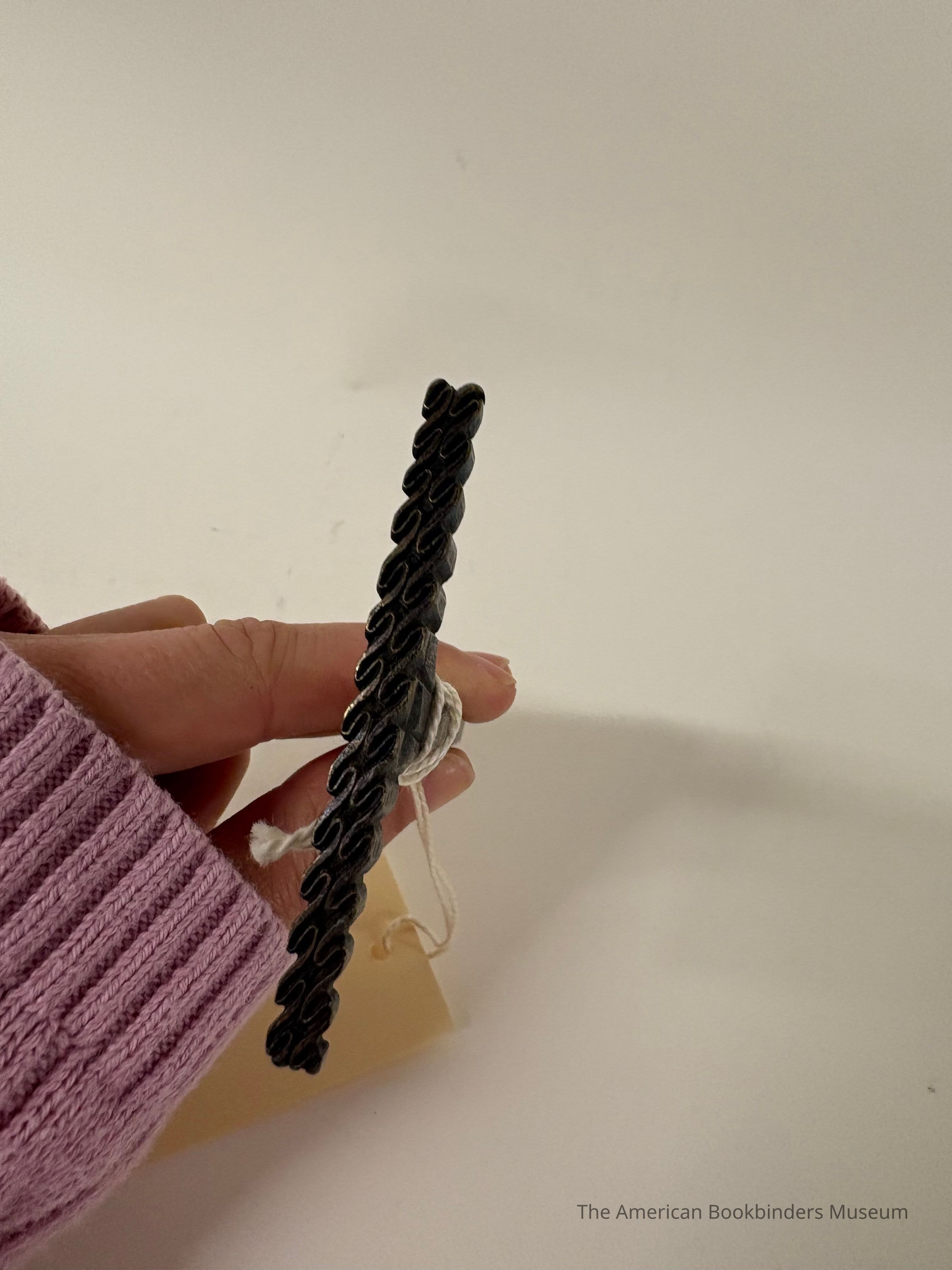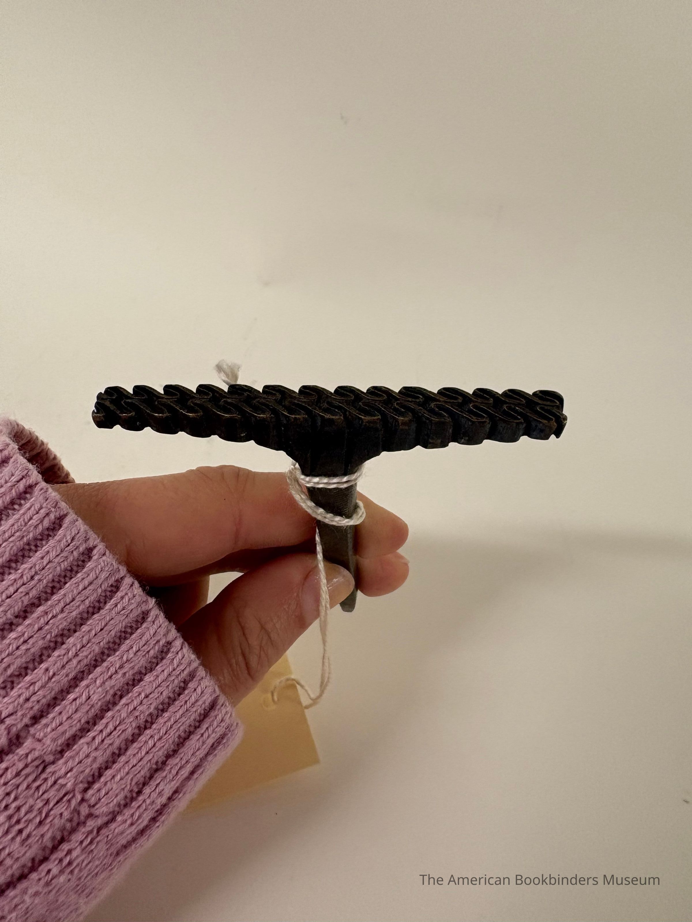 Decorative metal tool head of a 7.1 cm double wave shape motif.