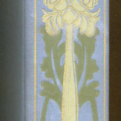 Lavender fine ribbed cloth binding with a stunning art nouveau design of three white flowers which are edged in gilt. Stylized flower motif repeated to spine. Titles to cover and spine in decorative typography. White stamping is rubbing off in places, as white tends to do.