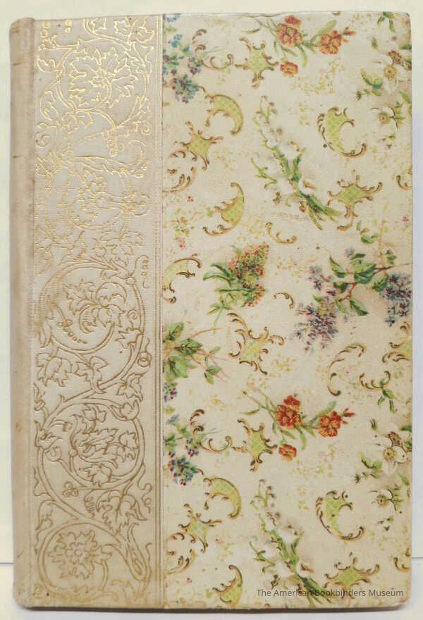 Bound in a wide white cloth spine stamped in elaborate gilt design. With pictorial paper covered boards to half of cover in flowers printed in orange, brown, purple and green against a white background. Binding represents a style which was extremely popular at the turn of the century noted for white spines and repeating small flower patterns in calico-like cloth or paper - obviously marketed to the feminine buyer.Notes