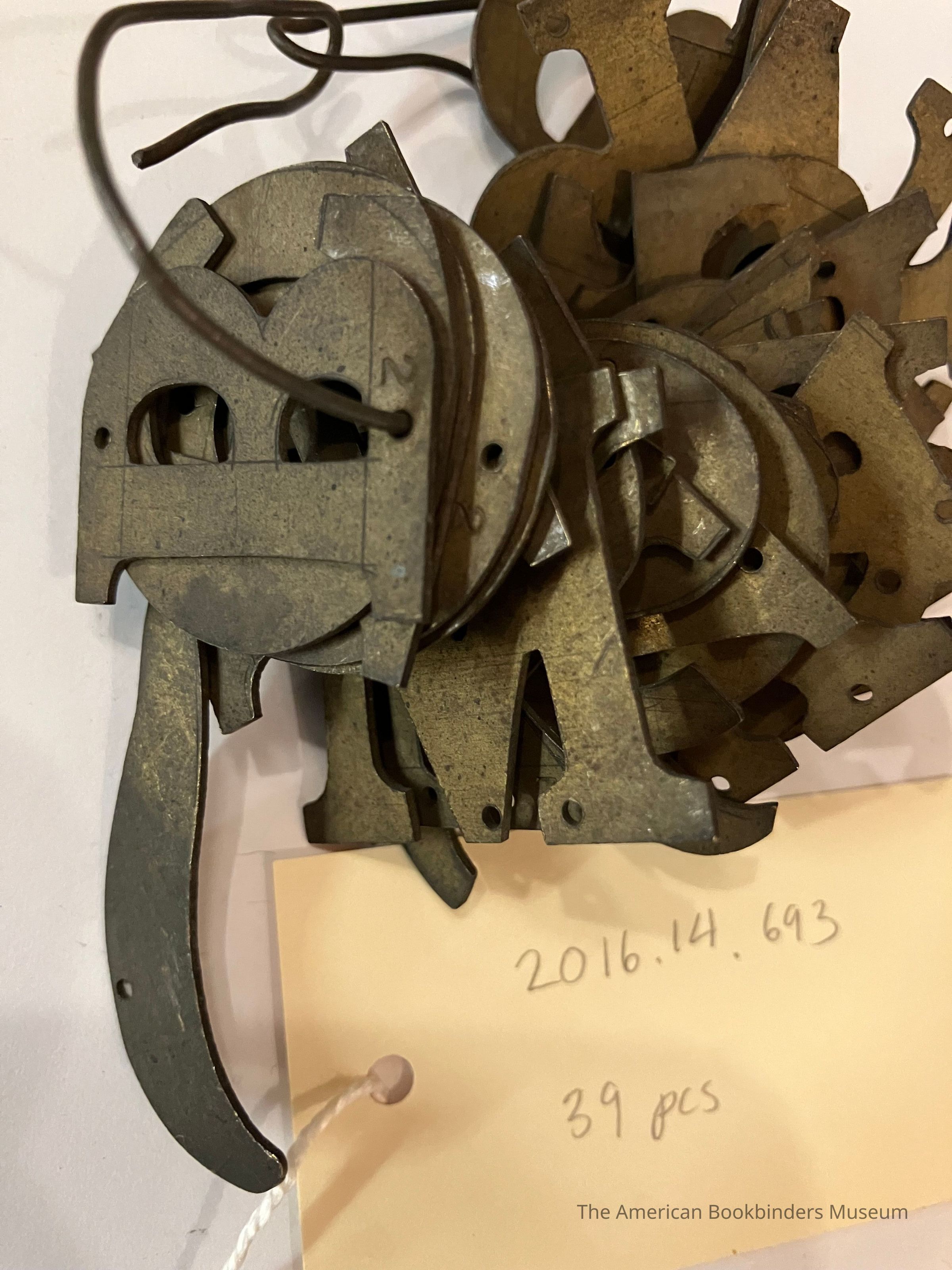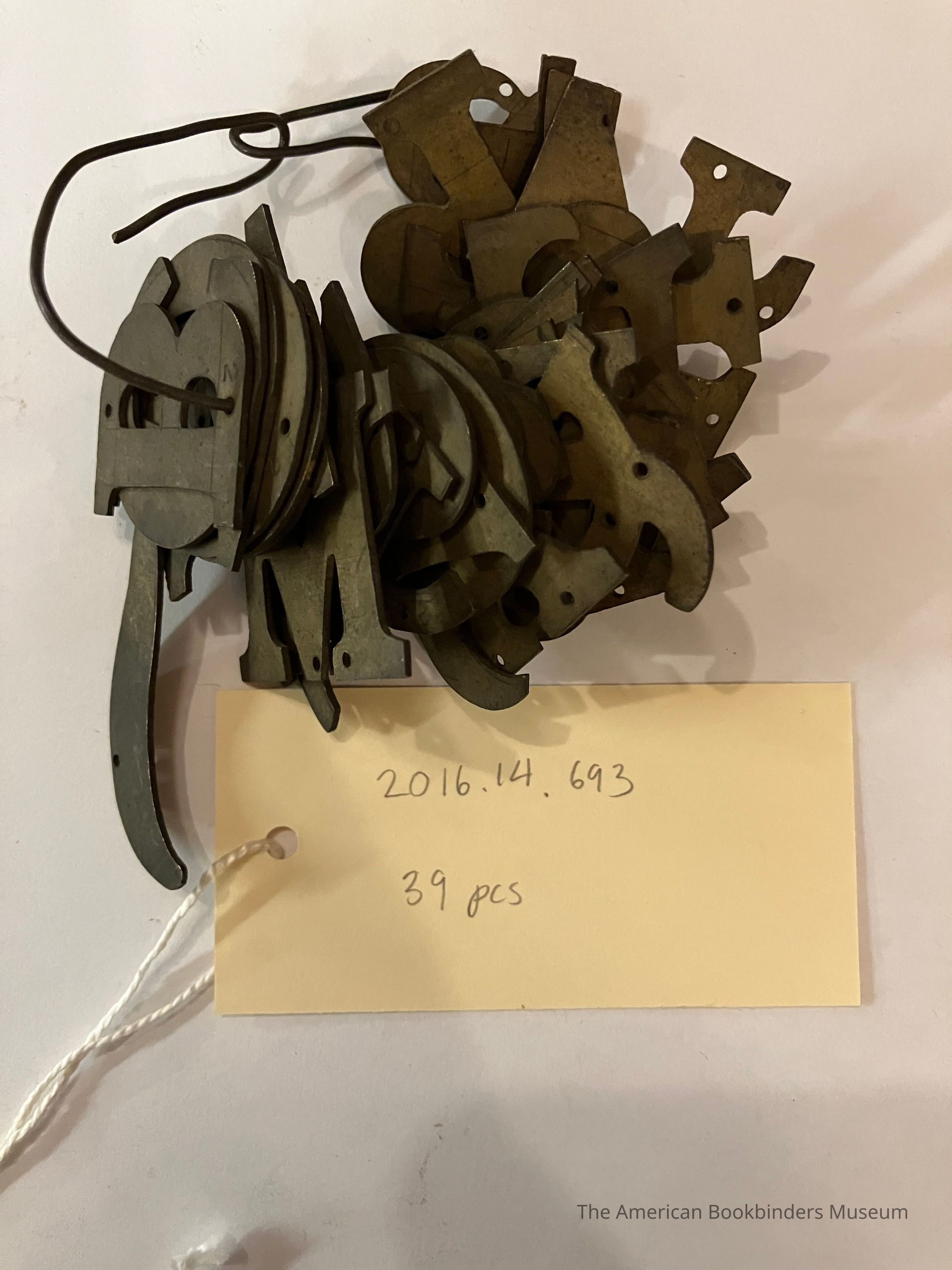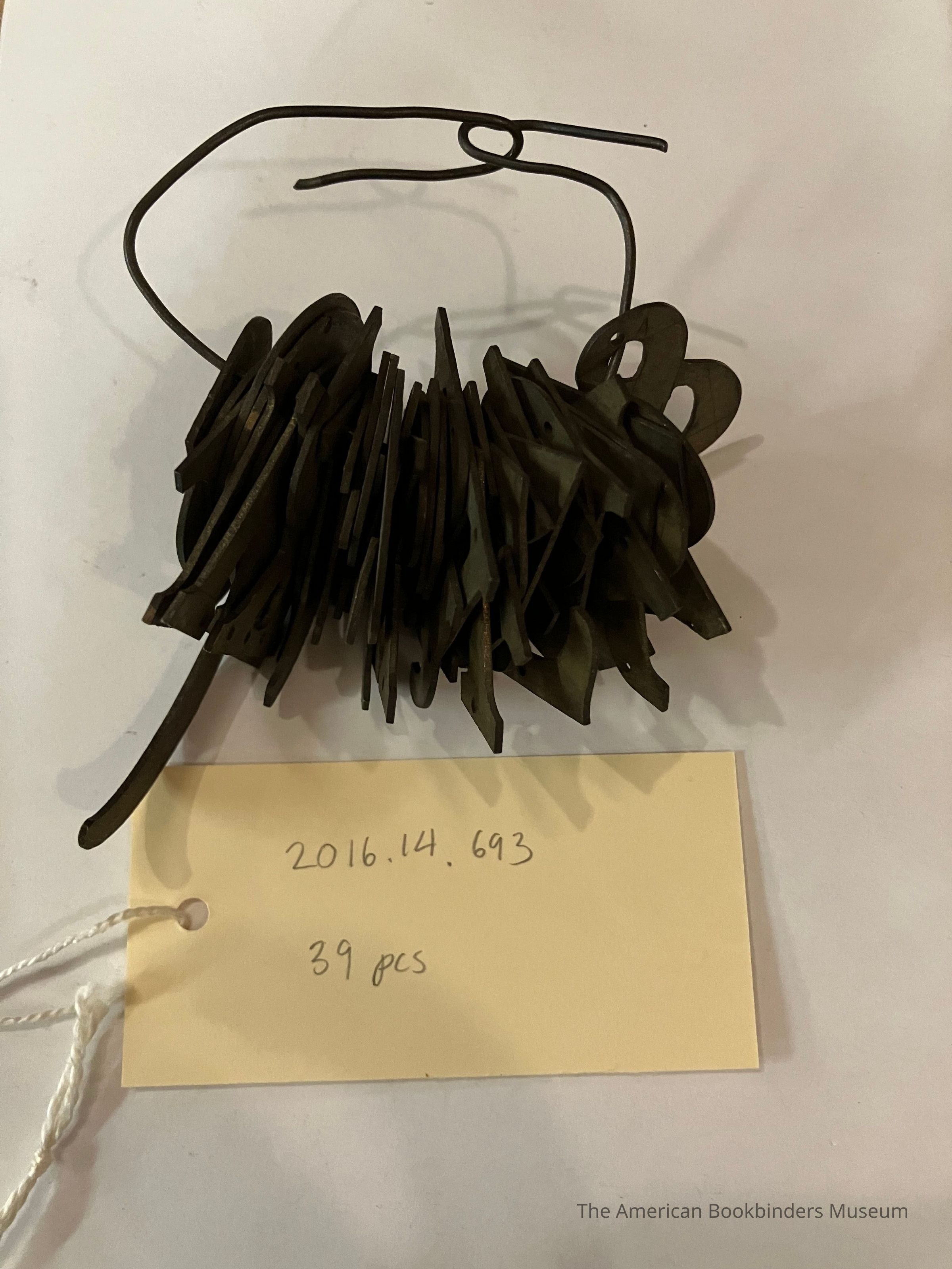 Metal stamping templates for letters and numbers, held together with a loop of wire.Use