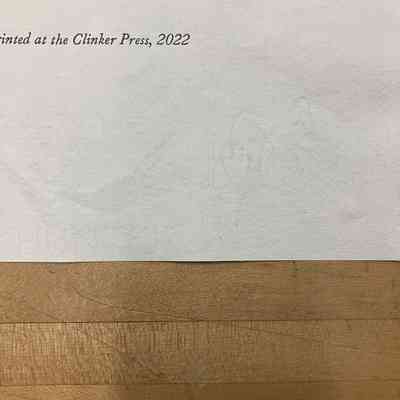 Thin white paper. Top illustration in gold shows two people reading a book, one of whom is a woman with her hair in an Ancient Greek or Roman style. A series of lines sweep from between them, over the book, and moves to the lower right side of the illustration. On the right side, several leaves flutter in the wind down from a tree.