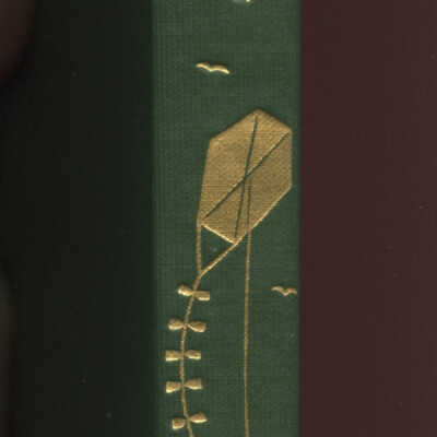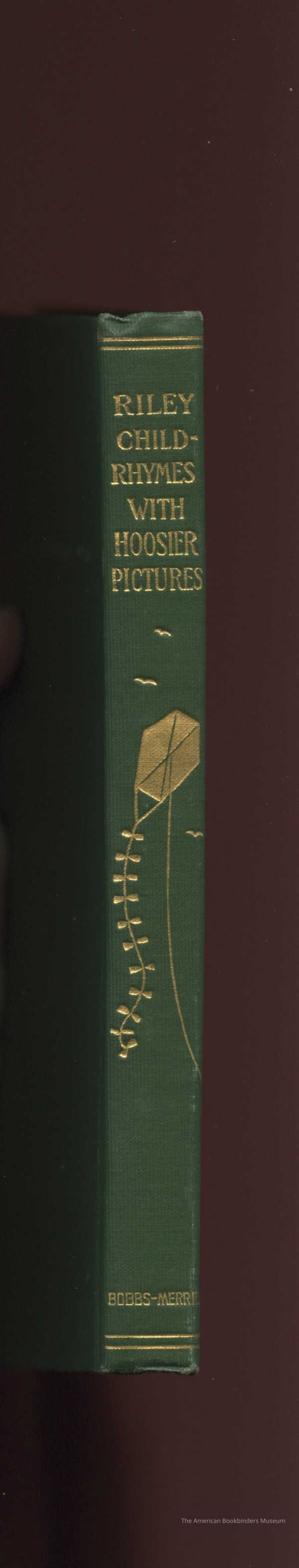 Bound in dark green cloth with a gilt and black stamped illustration on the front cover of a girl reaching up to a butterfly and a seated boy with a fishing pole. The spine decoration is stunning - a high flying kite with a long tail.Notes