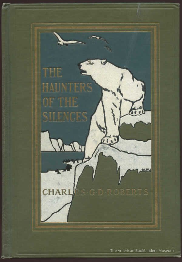 Bound in olive green cloth with a triple gilt ruled decoration to the front cover depicting a polar bear in an arctic landscape. Design is stamped in gilt, blue, white and black and attributed to Charles Livingston Bull. The spine is decorated with a gilt stamped animal head. Deckled page edges. Illustrated end papers.