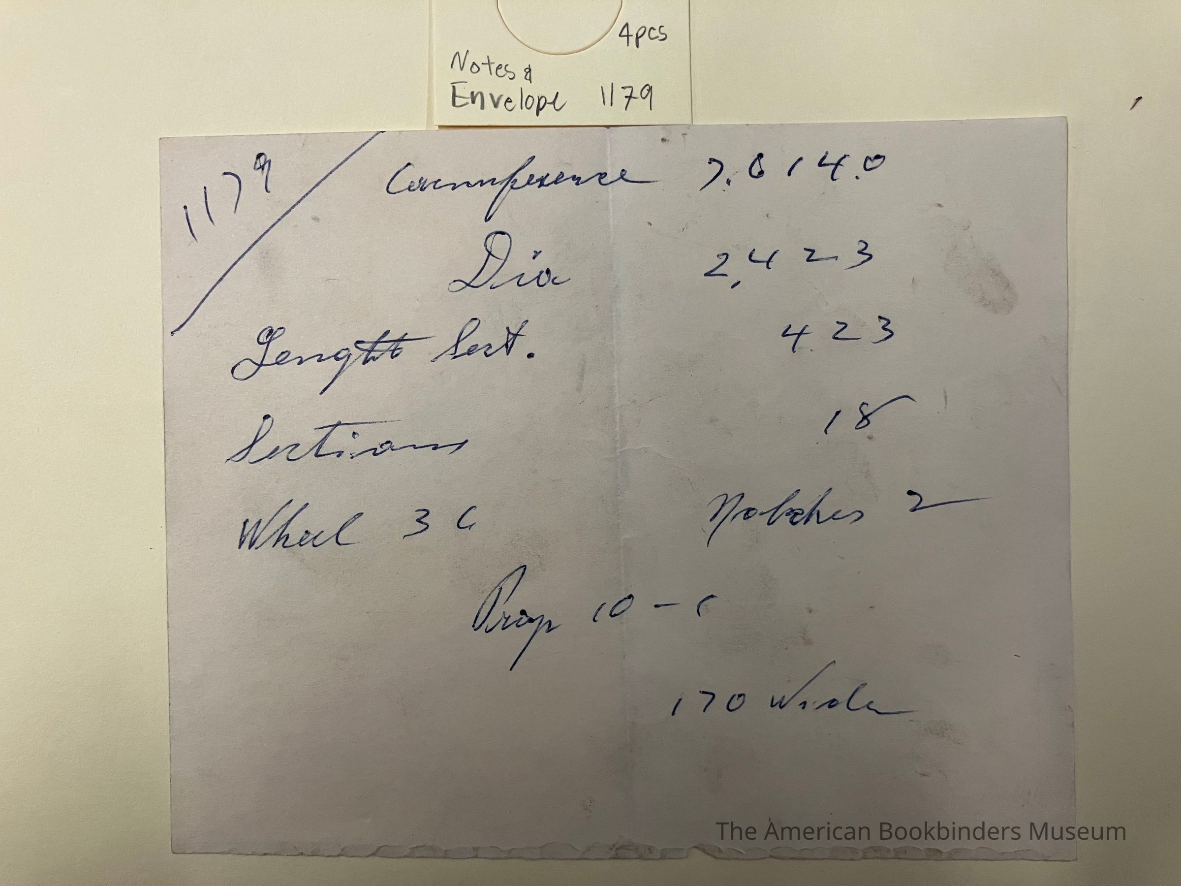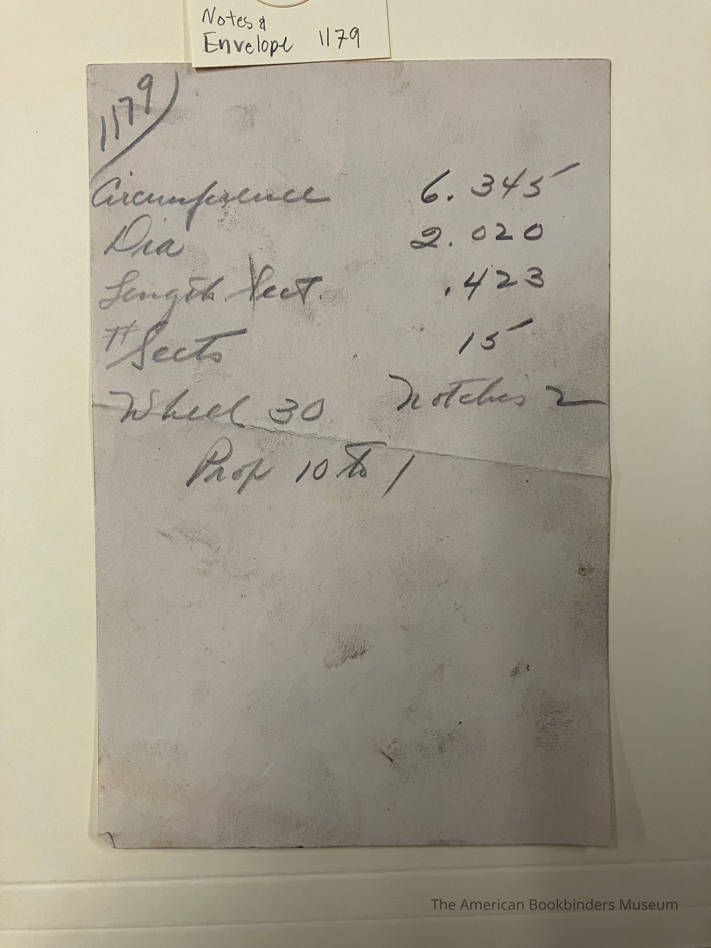 Hoole Envelope and Notes on Design 1179Entry/Object ID