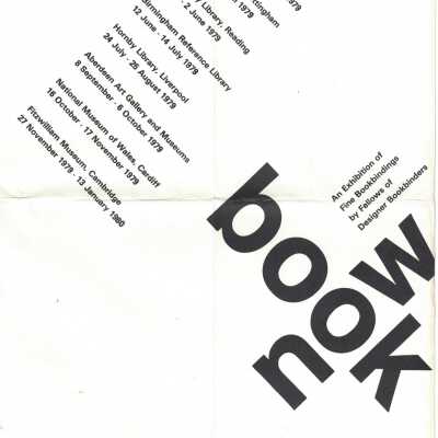 Note: Folio for "book now" An Exhibition of Fine Bookbindings by Fellows of Designer Bookbinders tucked in centerfold