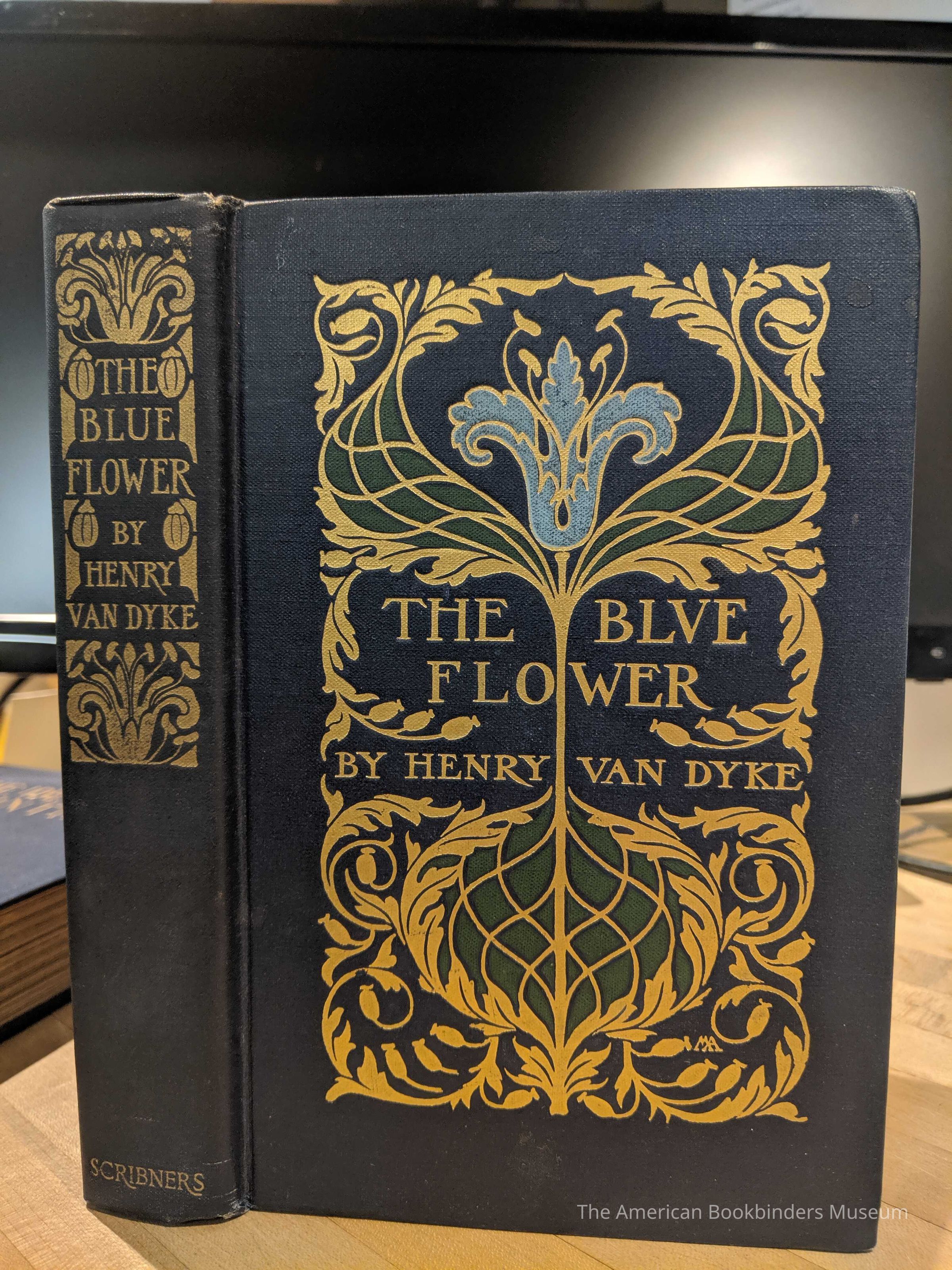 Bound in blue cloth, with art nouveau design stamped in light blue, green, and gilt. Gilt design to spine. Signed binding, "MA" to lower right corner.