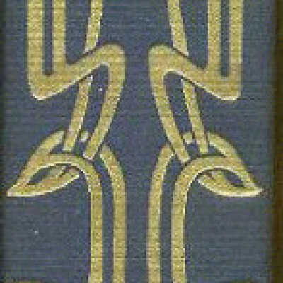 Bound in royal blue cloth boards, a bold, striking design of intertwining gilt on the front and spine, giving the appearance of polished brass, capped by a gold crown on each. Deckled edges. Top edge gilt.