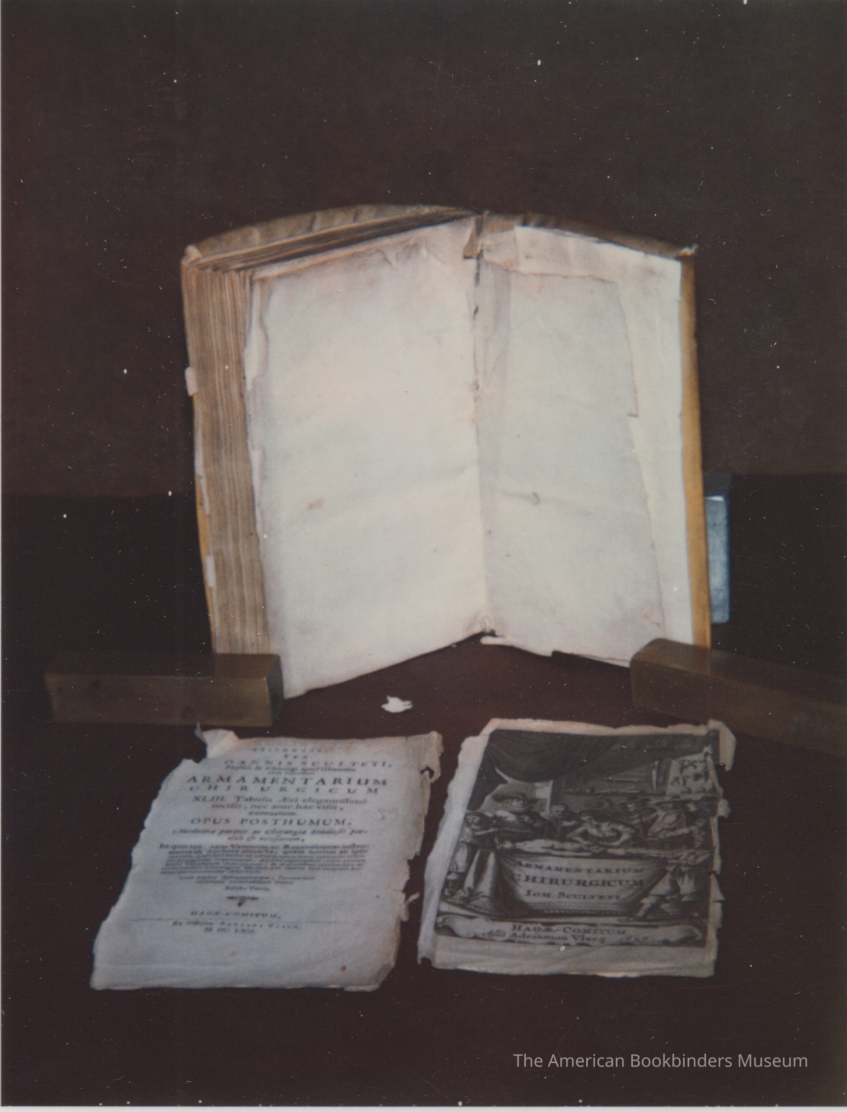 Photo shows the same materials as 2023.9.11.ce. However the book is held open facing the camera, showing the last pages which are blank.Collection