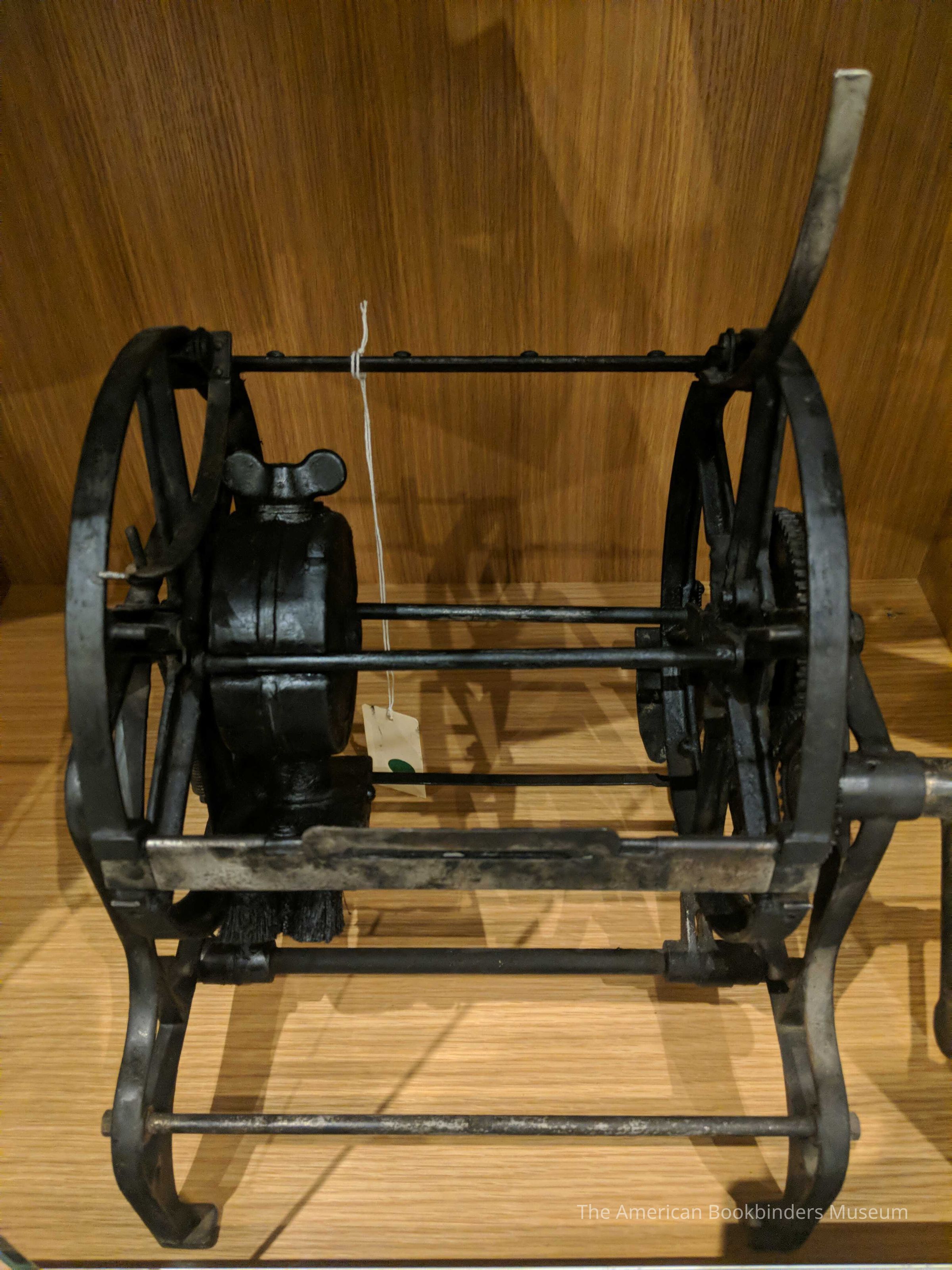 Very possibly a Neostyle Rotary Stencil Duplicating Machine, Model 8 or Model 7. Lacks the wooden base which would have the manufacturer's plates and patent number on it, but the arrangement of the sides, gears, handle, and general form are almost identical.
