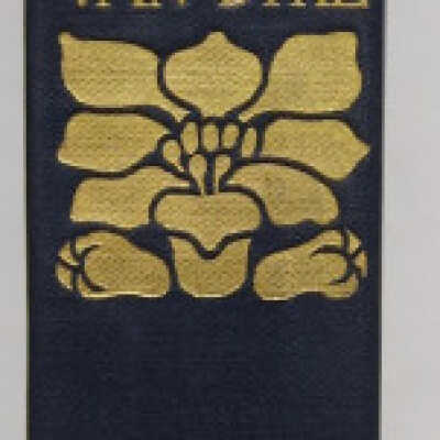 Unsigned Margaret Armstrong Art Nouveau cover design in gilt, coral, and two shades of green stamped upon navy blue cloth. Gilt titles and design to spine. Notable for a lighter shade of coral, almost pink, stamping and a more green, rather than blue/green, stamping color than other First Editions.