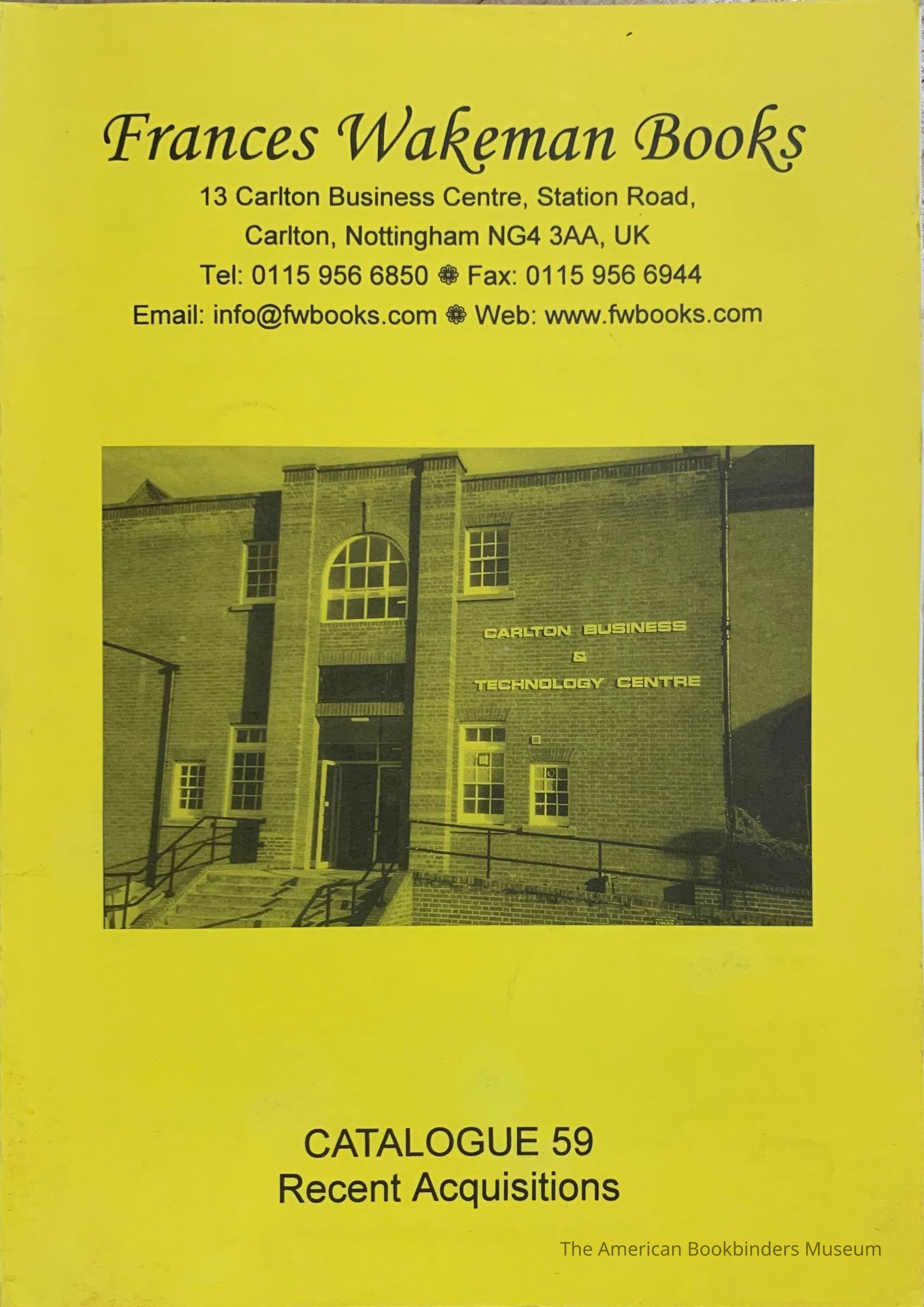 Frances Wakeman Books : Catalogue 59, Recent AcquisitionsEntry/Object ID