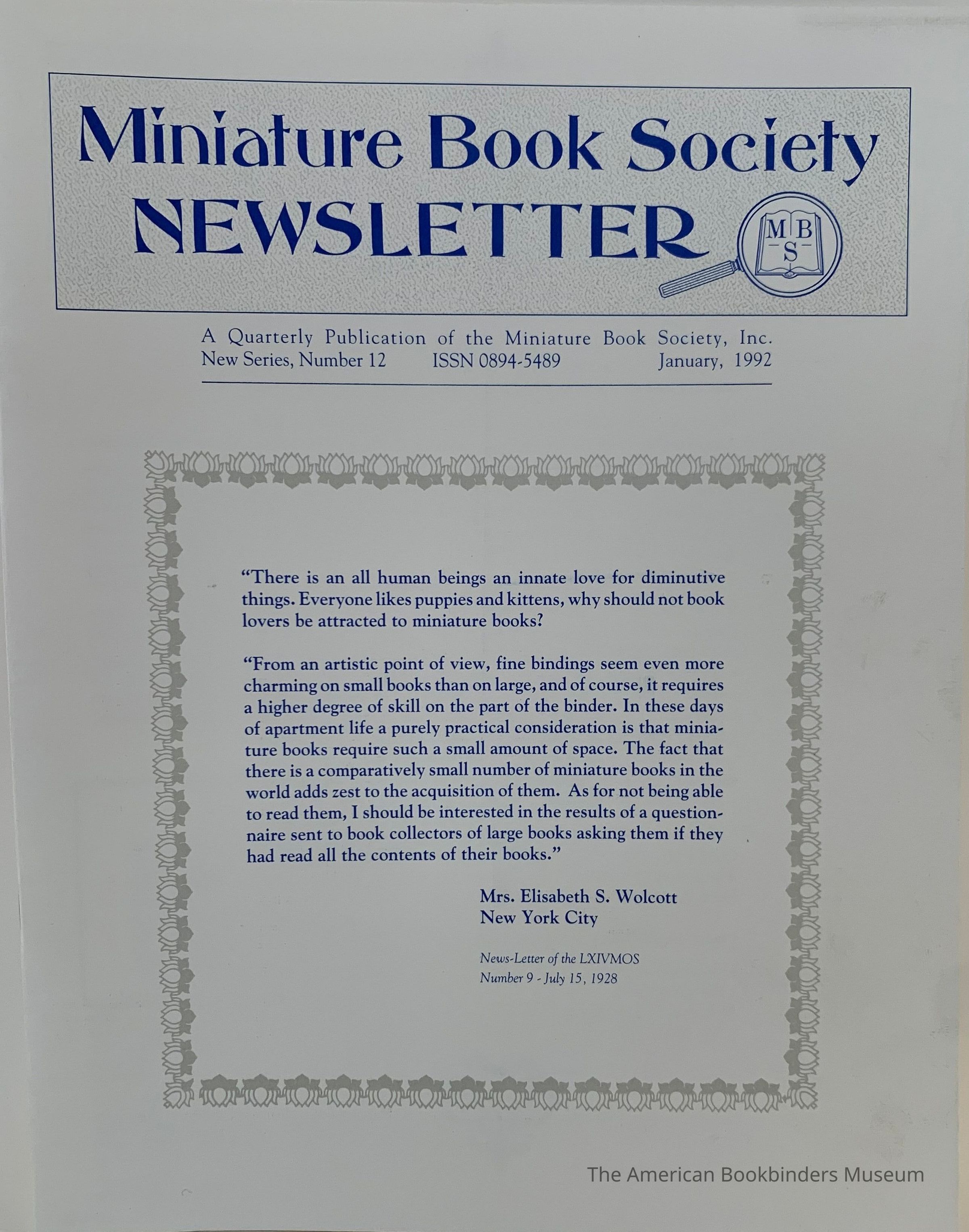 Miniature Book Society newsletter. N.S. no.12 : January, 1992Entry/Object ID