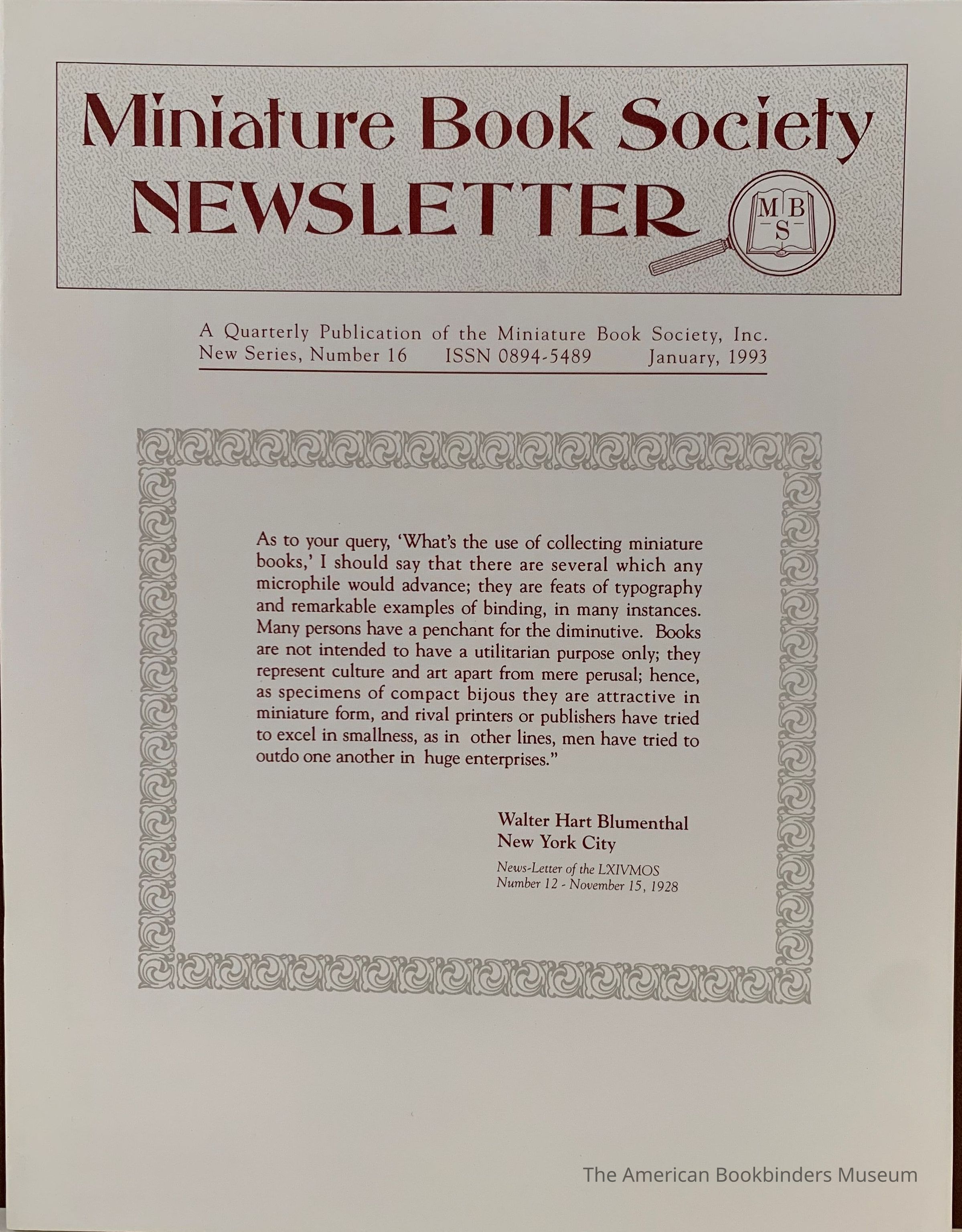 Miniature Book Society Newsletter. N.S. 16 : January, 1993Entry/Object ID
