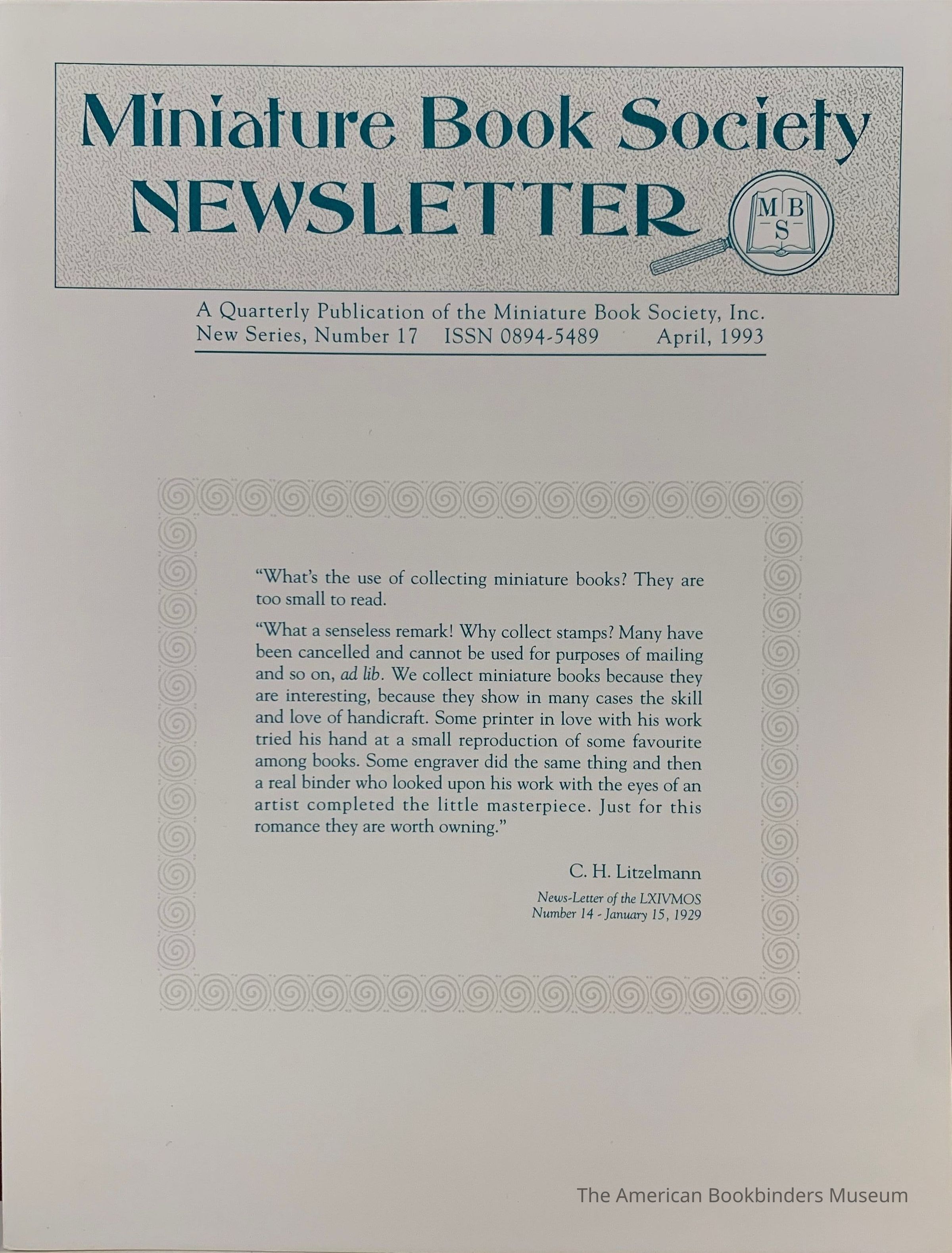 Miniature Book Society Newsletter. N.S. no.17 : April, 1993Entry/Object ID