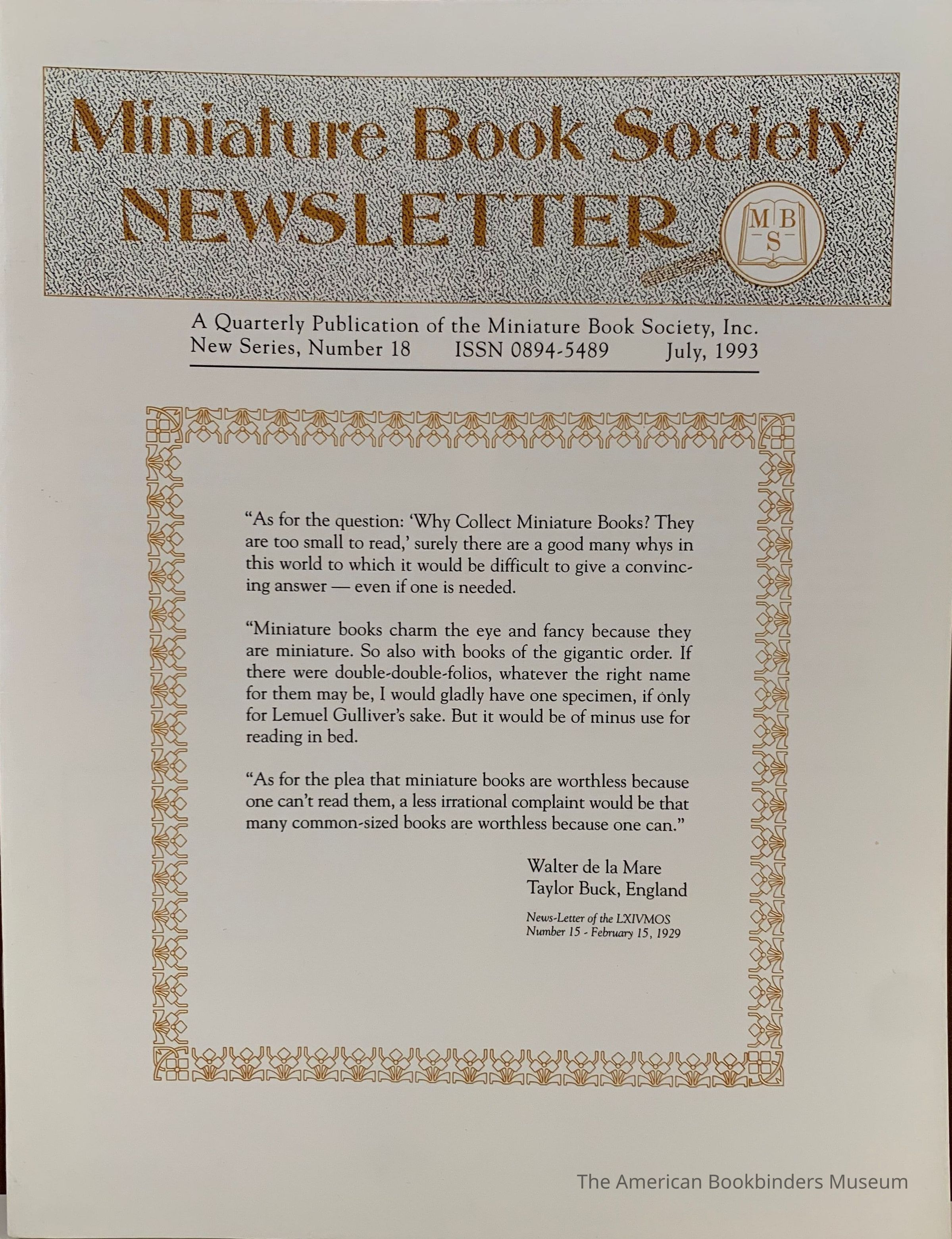 Miniature Book Society Newsletter. N.S. no.18 : July, 1993Entry/Object ID