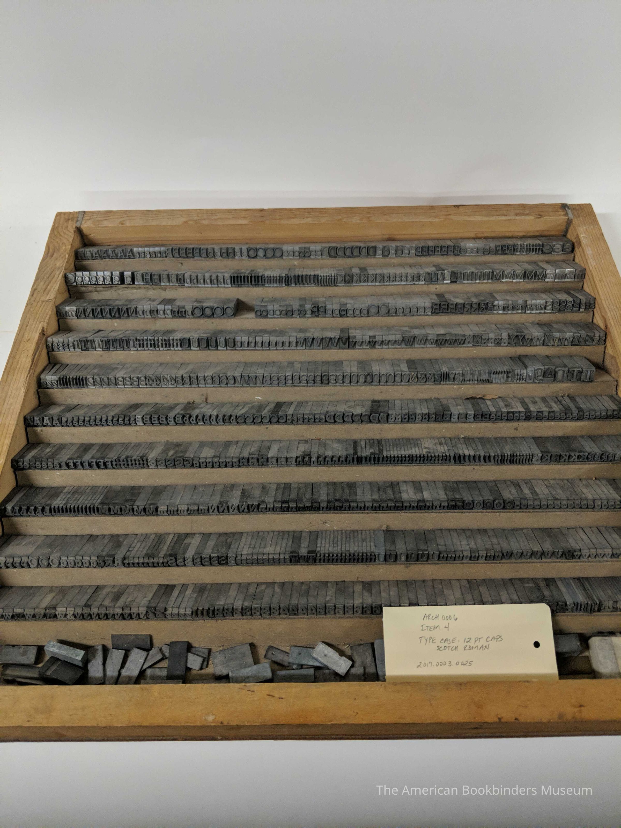 Type case filled with 12 point Scotch Roman type, some lower case, but mostly capitals.