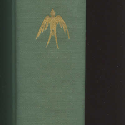 Bound in a beautiful light mint green cloth with a floral border design of interweaving vine and leaf stamped in dark green and rose. This border forms a central circle through which a gilt stamped flock of birds soar upward. Gilt titles to cover and spineNotes