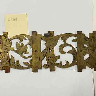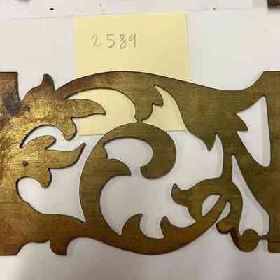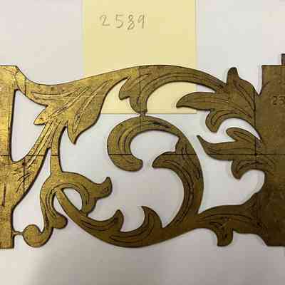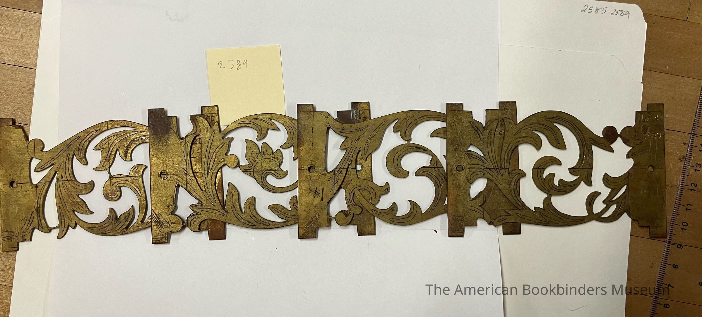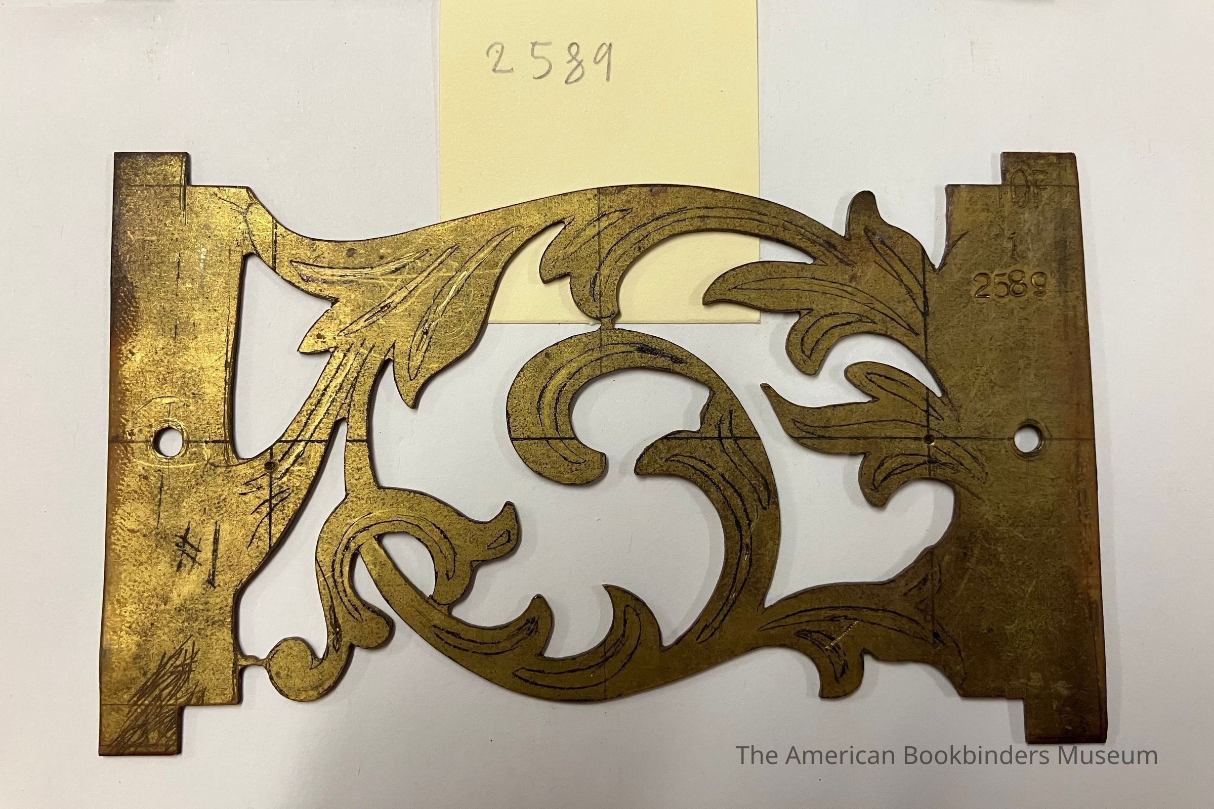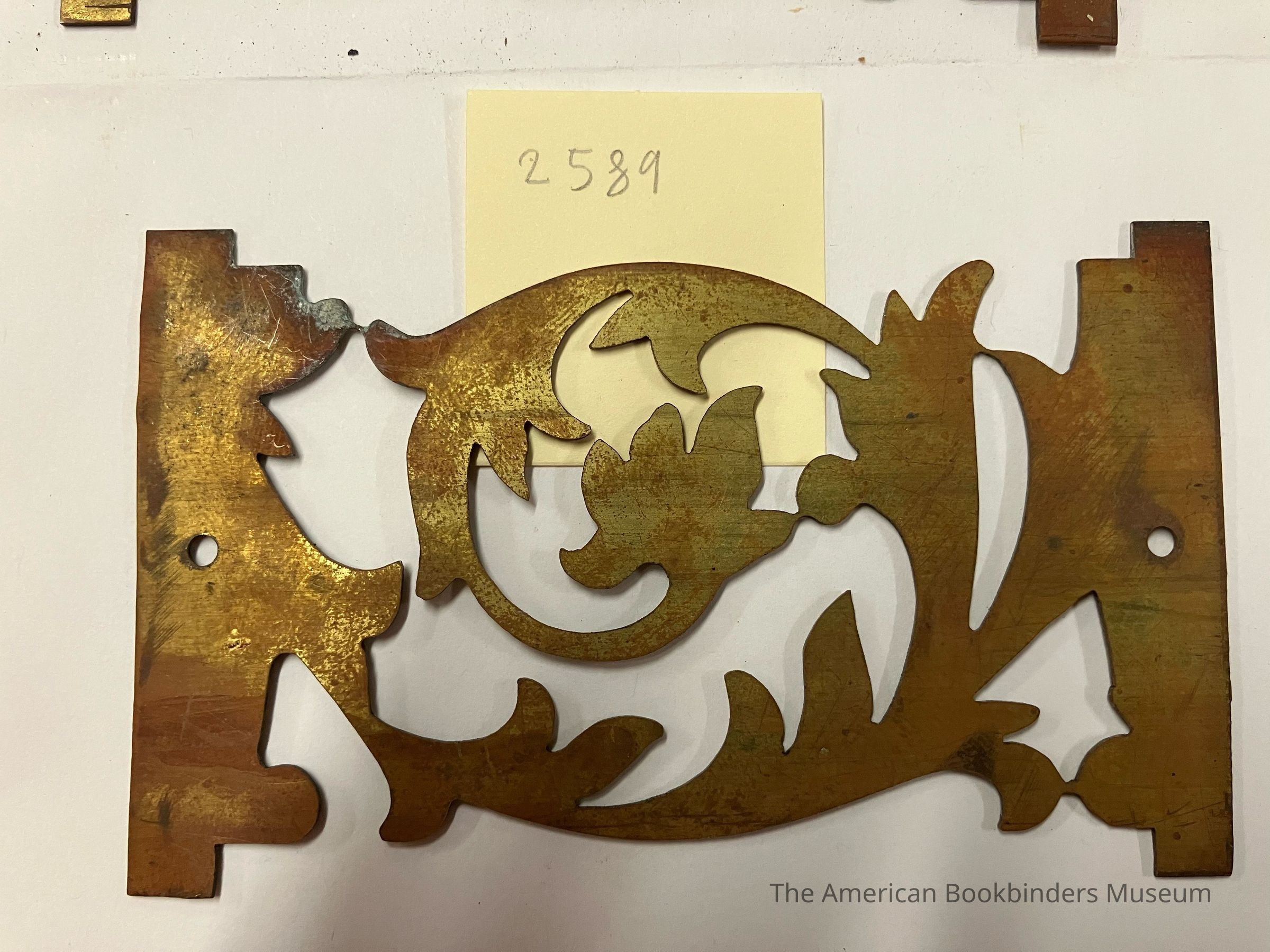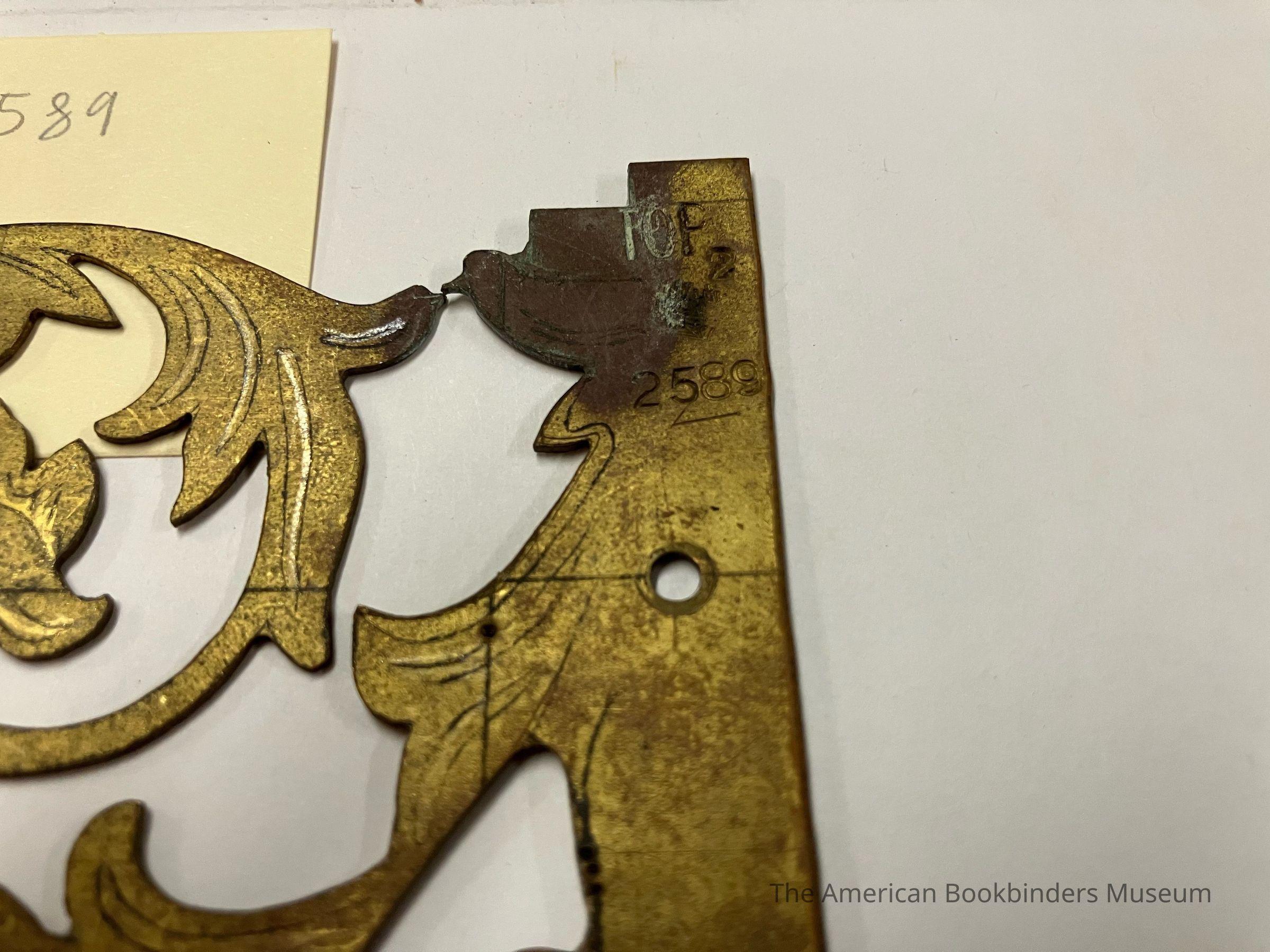 Metal stamp die templates. Has various marking to indicate cutouts, implying these are unfinished. 4 individual pieces which are laid in sequence to create the pattern shown in the catalog.Use