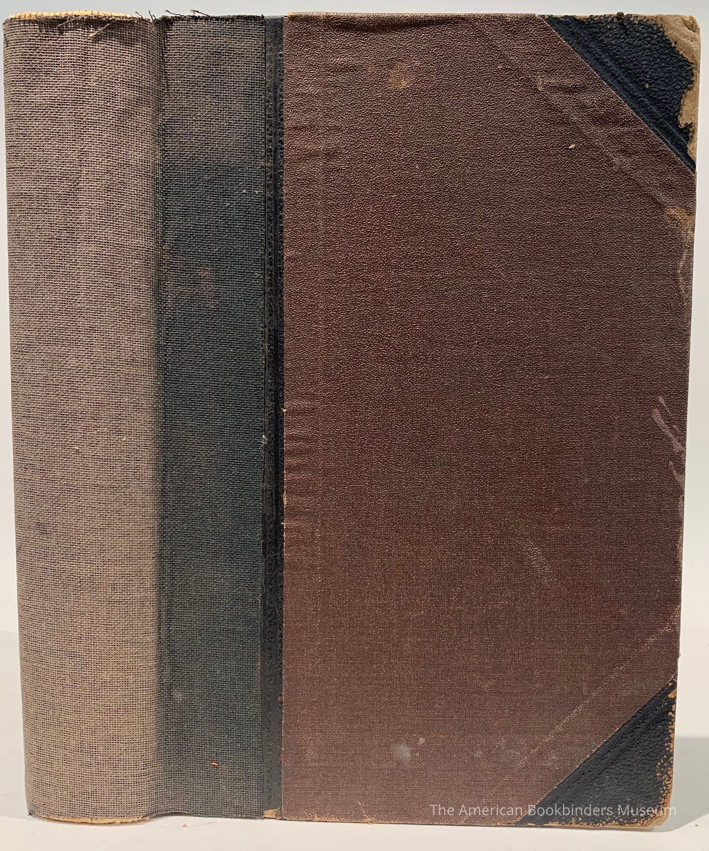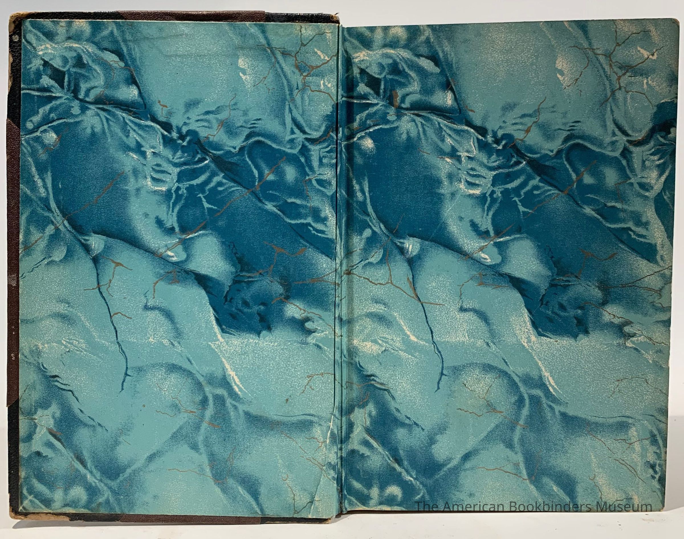 Half-bound in black leather; boards covered in dull maroon cloth; marbled endpapers; marbled edges.