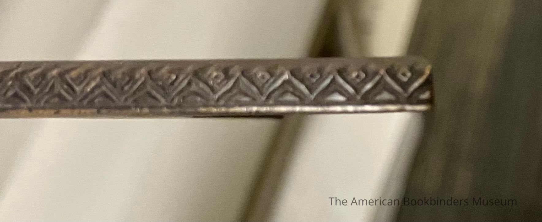 Tools., Book ornamentation, Bookbinding, Finishing., Hand binding., Fillet., Gouge., Rolls., Stamp., Pallet.Relationships