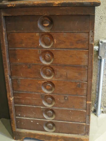 Cabinet has 8 drawers, divided within to organize the ruling pens.Collection