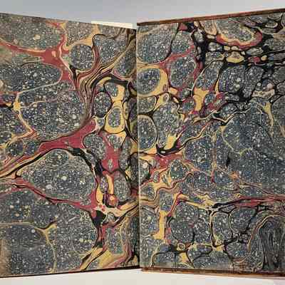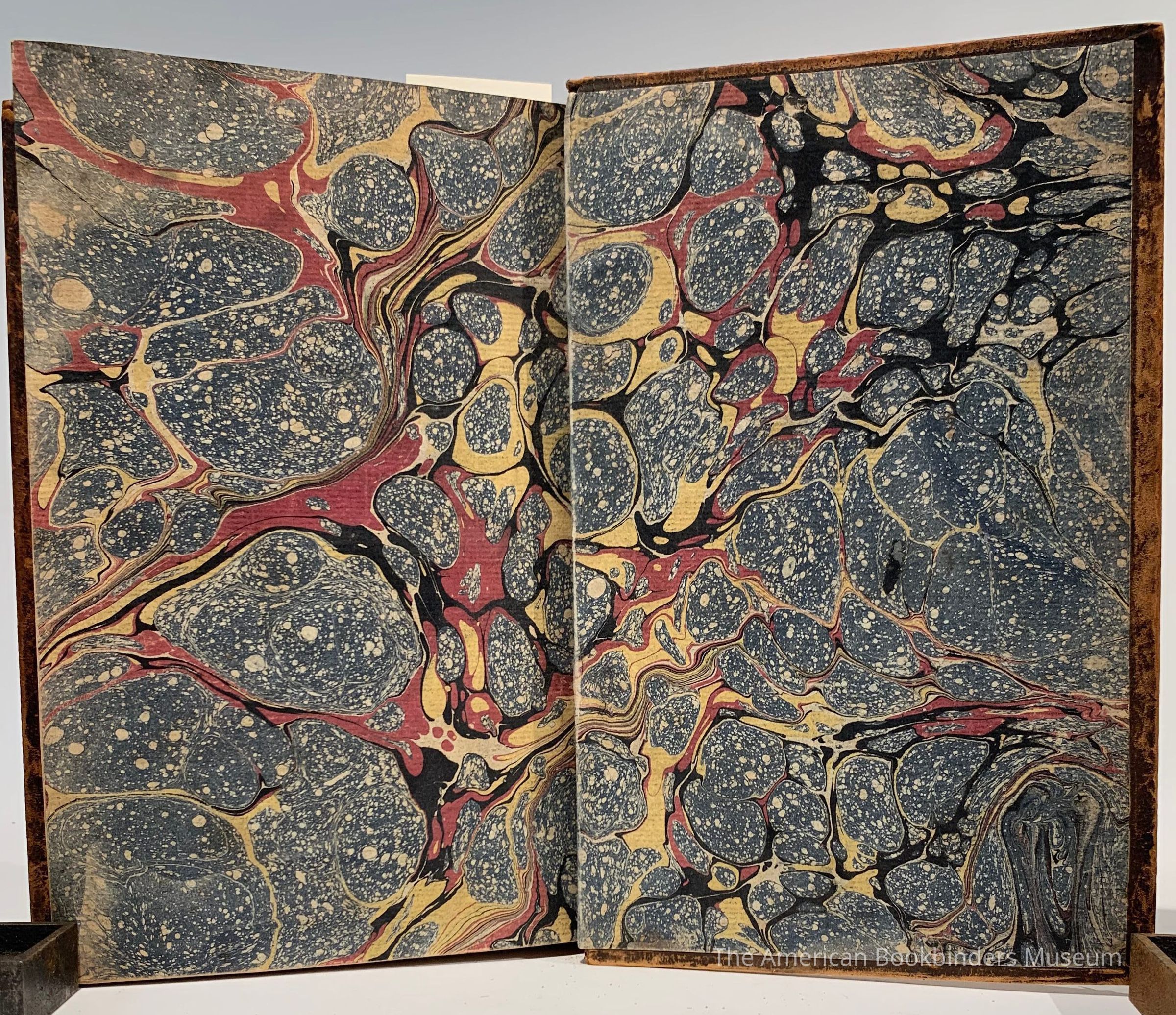Bound in leather with gilt stamped border on covers; marbled endpapers.
