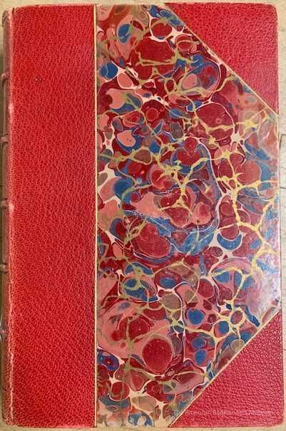 Half leather binding; red leather; red marbled paper, gold line stamping