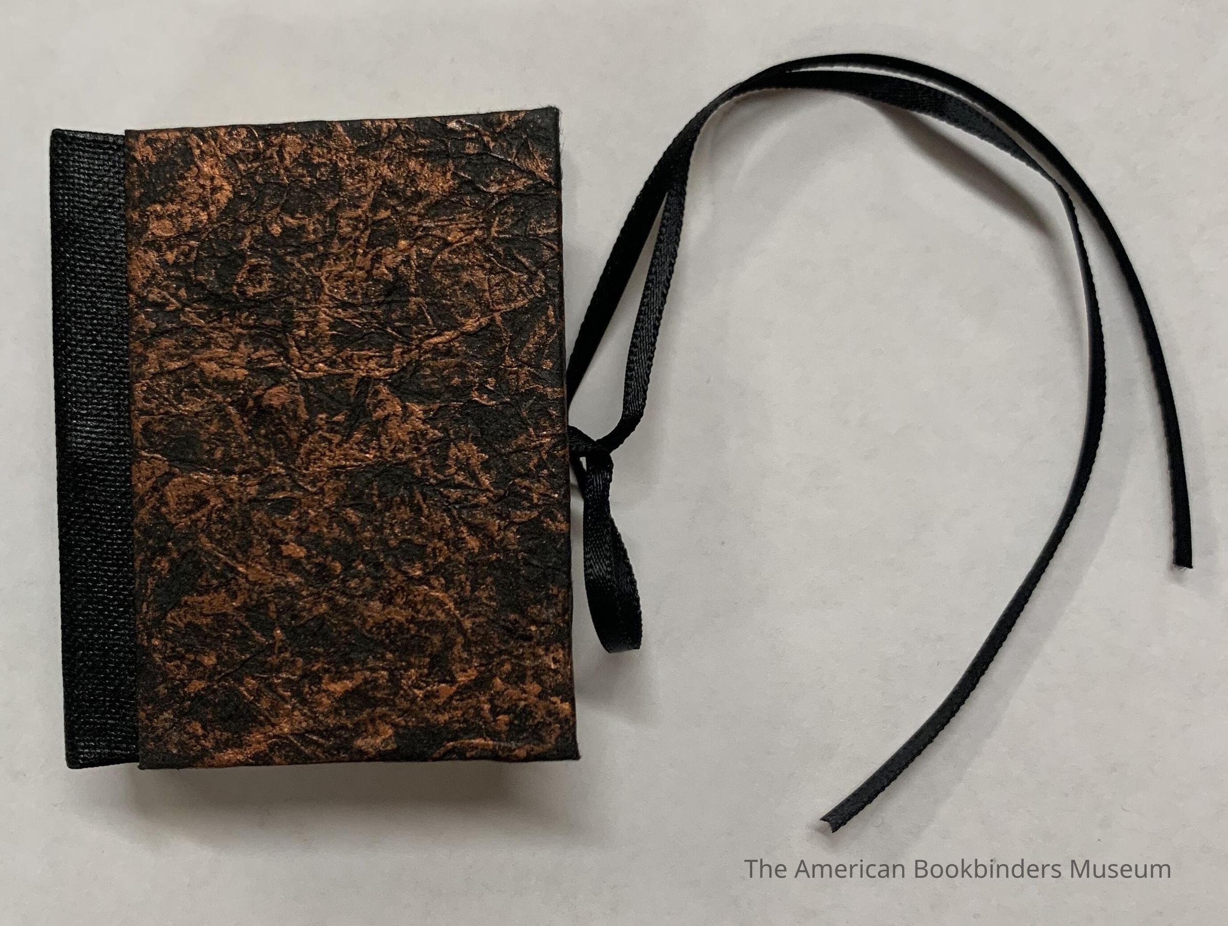 Handmade miniature book - black spine, bronze-colored paper cover, black ribbon tiesEntry/Object ID