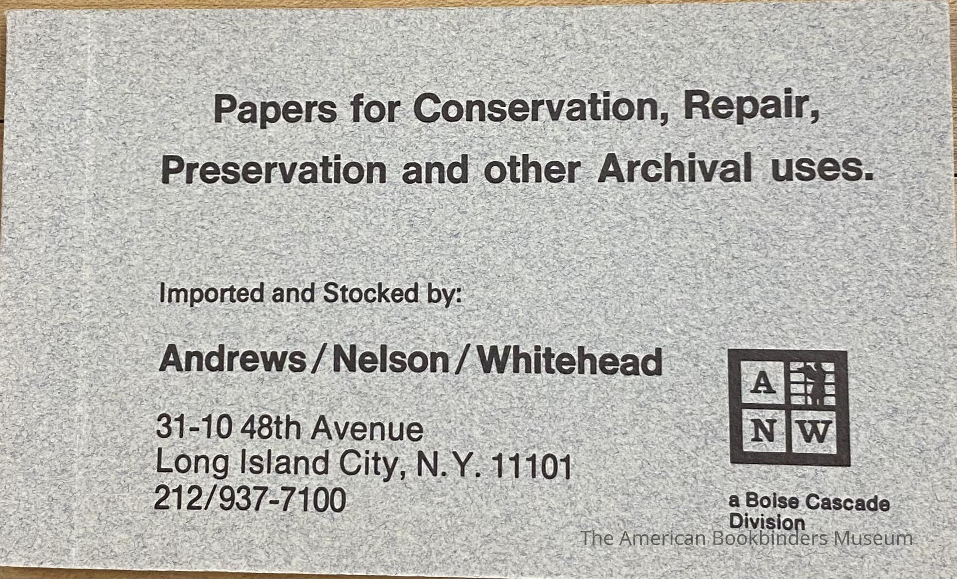 Papers for Conservation, Repair, Preservation and other Archival uses.Entry/Object ID