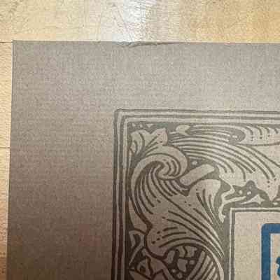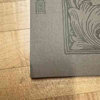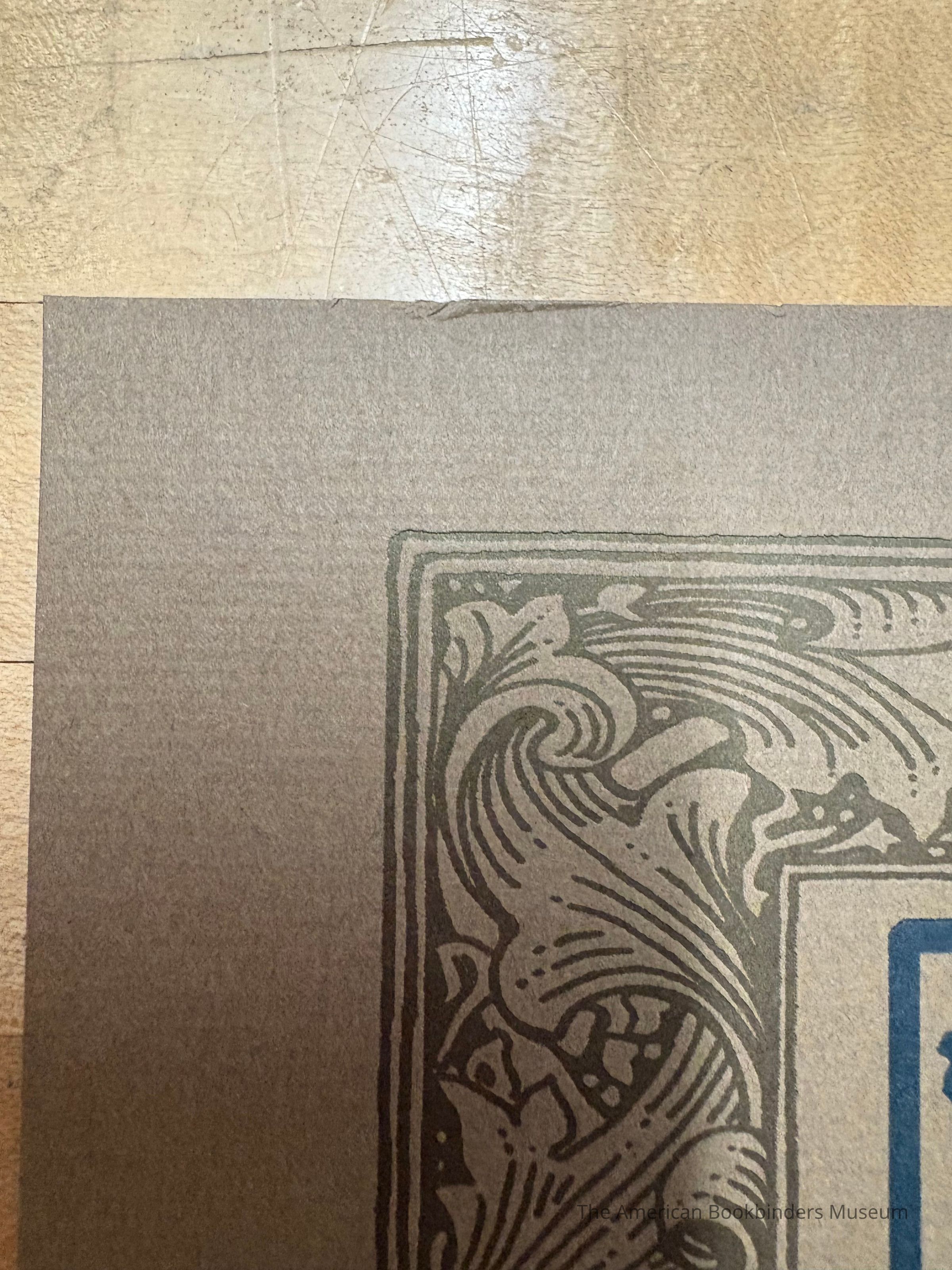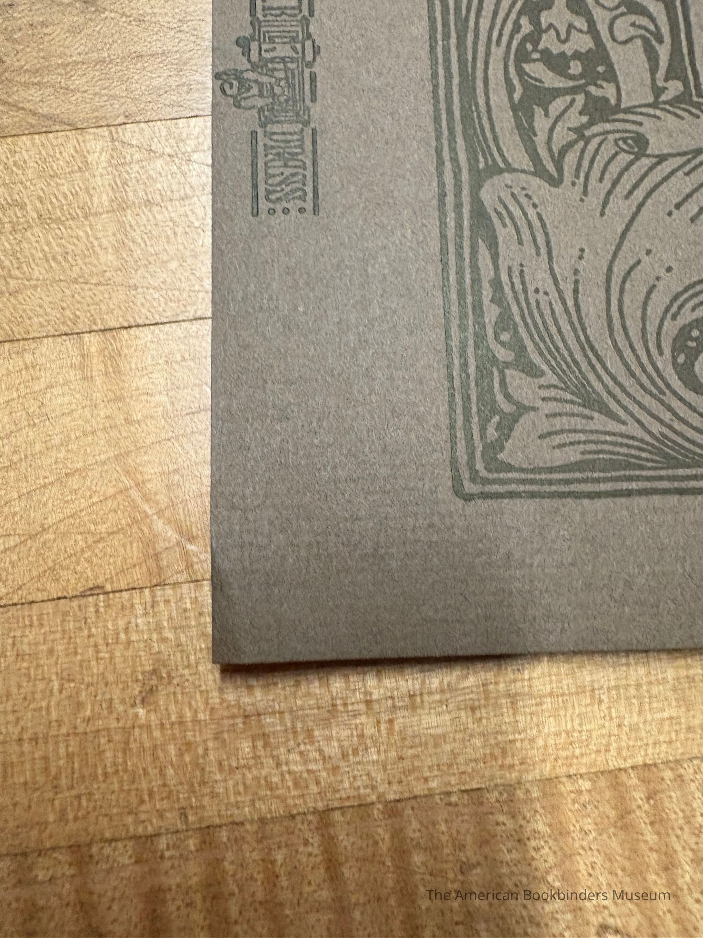 Illustration of a person reading a book in a garden, surrounded by a floral design. Printed on dark brown paper.Collection