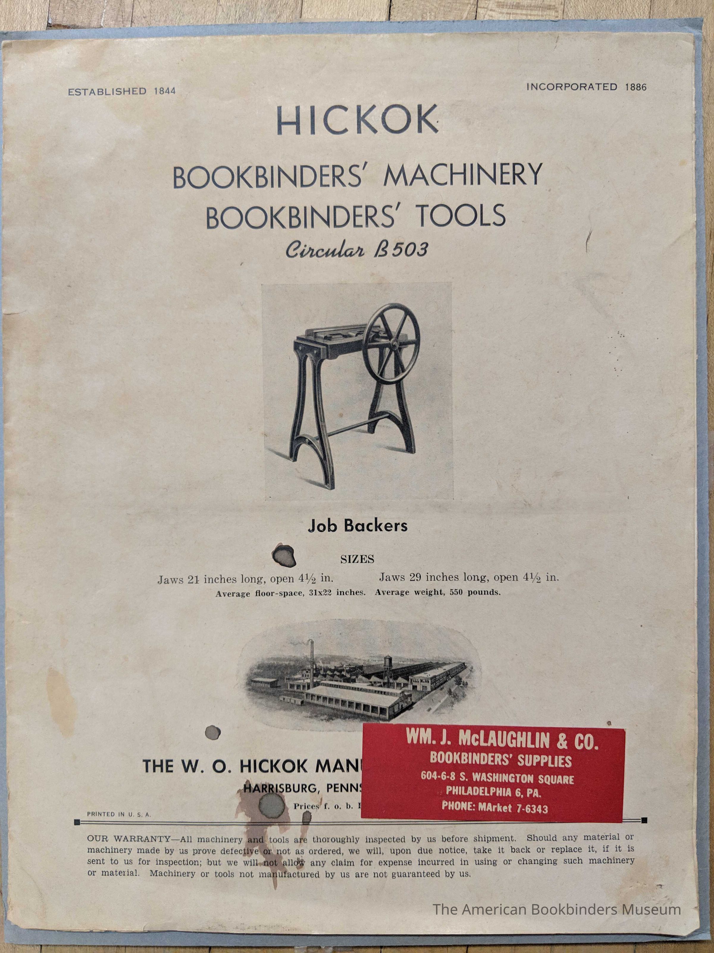 Hickok Bookbinders' Machinery/Bookbinders' Tools CatalogEntry/Object ID