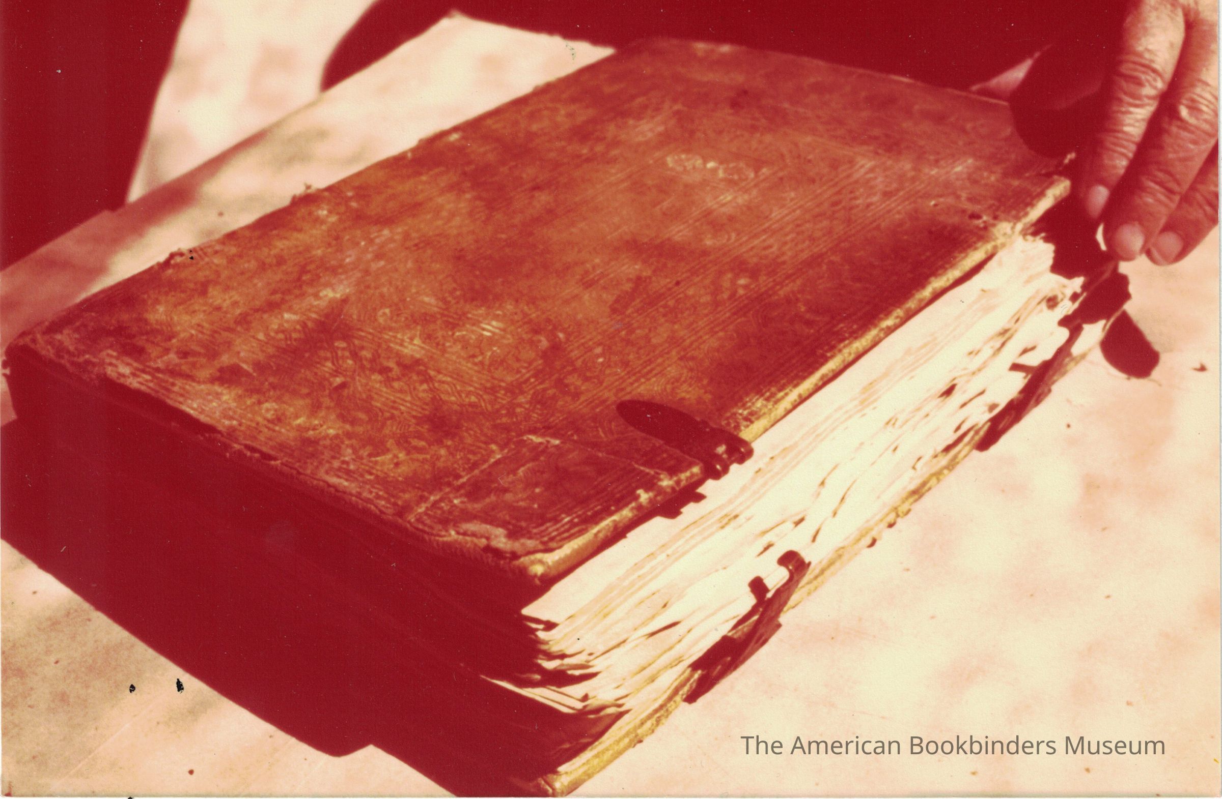 Photo of a book with metal clasps and a woven design on the coverEntry/Object ID