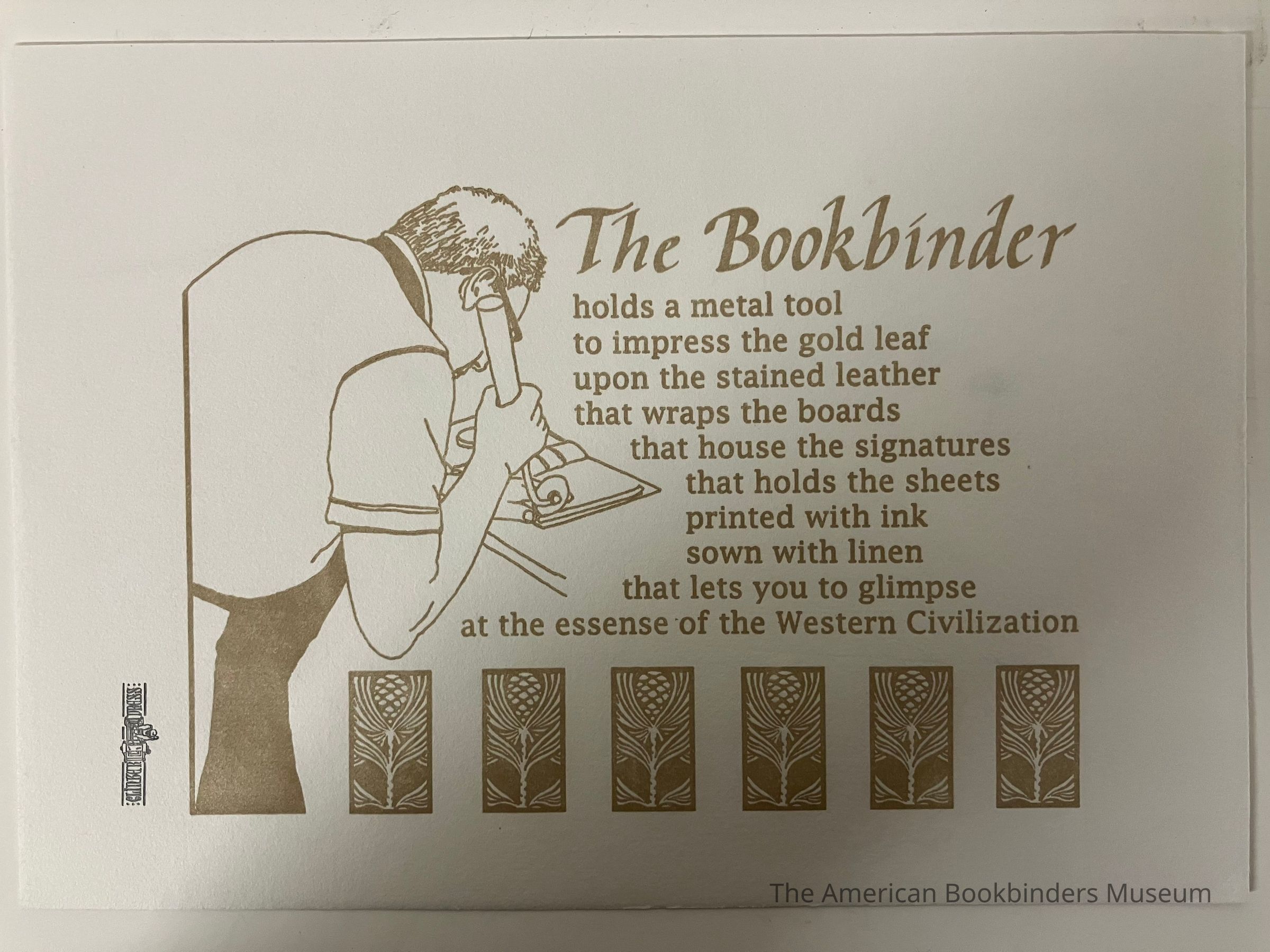 The Bookbinder holds a metal tool ...Entry/Object ID